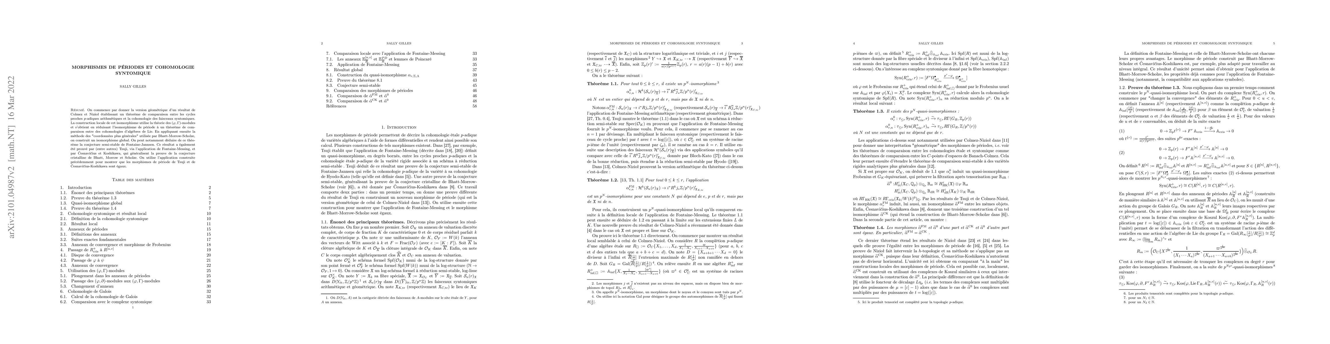 We give the geometric version of a construction of Colmez-Niziol which establishes a comparison theorem between arithmetic p-adic nearby cycles and syntomic sheaves. The local construction of the period isomorphism uses $(\phi,\Gamma)$-modules theory and is obtained by reducing the period isomorphism to a comparison theorem between cohomologies of Lie algebras. By applying the method of "more general coordinates" used by Bhatt-Morrow-Scholze, we construct a global isomorphism. In particular, we deduce the semi-stable conjecture of Fontaine-Jannsen. This result was also proved by (among others) Tsuji, via the Fontaine-Messing map, and by Cesnavicius and Koshikawa, which generalized the proof of the crystalline conjecture by Bhatt, Morrow and Scholze. We use the previous map to show that the period morphism of Tsuji and the one of Cesnavicius-Koshikawa are the same.