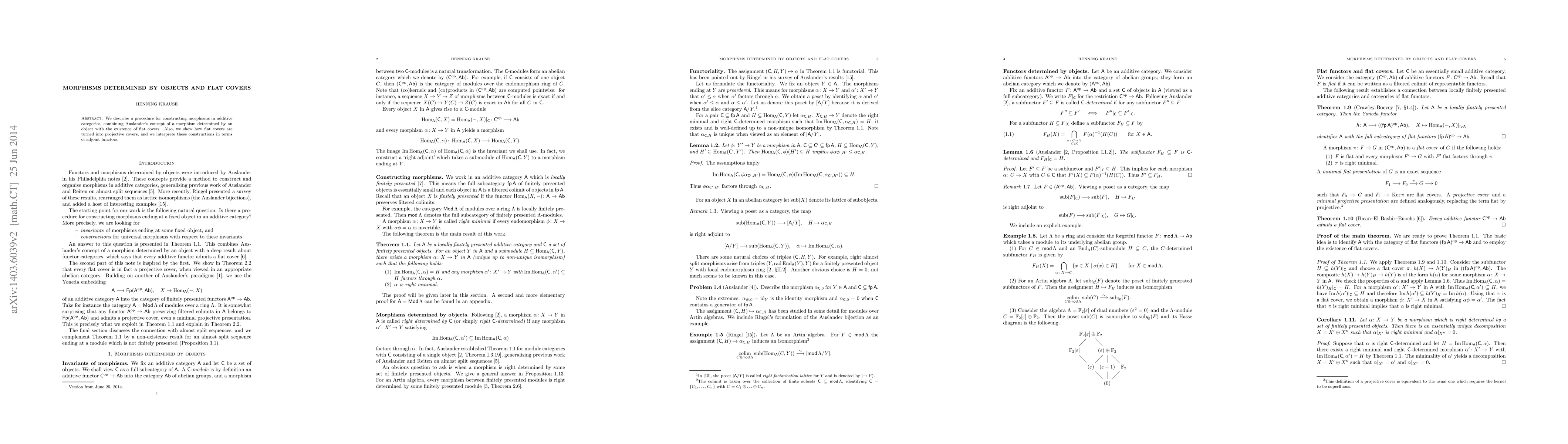 The paper describes a procedure for constructing morphisms in additive categories, combining Auslander's concept of a morphism determined by an object with the existence of flat covers, and interpreting these constructions in terms of adjoint functors.