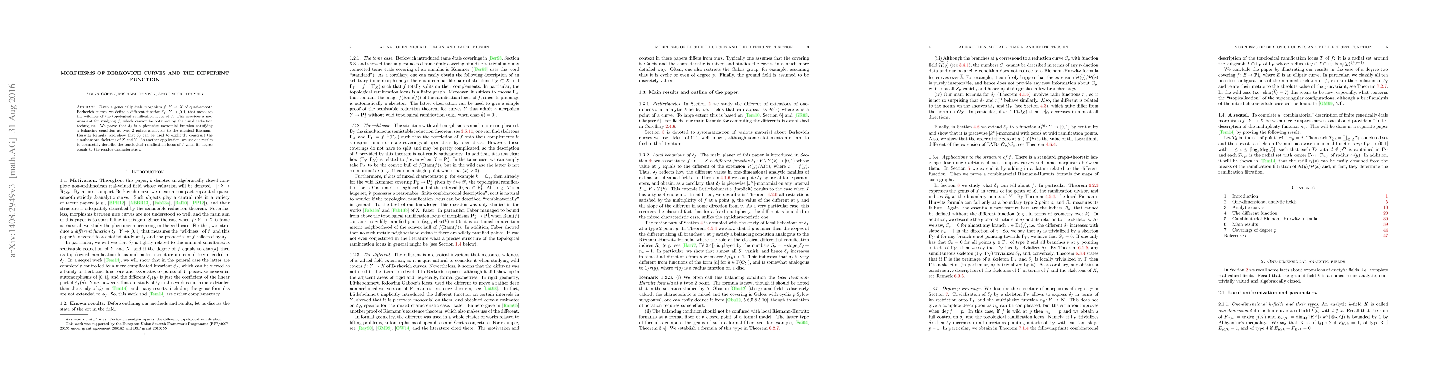 The paper defines a different function $\delta_f$ for generically étale morphisms of quasi-smooth Berkovich curves, providing a new invariant for topological ramification analysis. The function satisfies a balancing condition and aids in constructing simultaneous skeletons, with applications to describing ramification loci when the degree matches the residue characteristic.