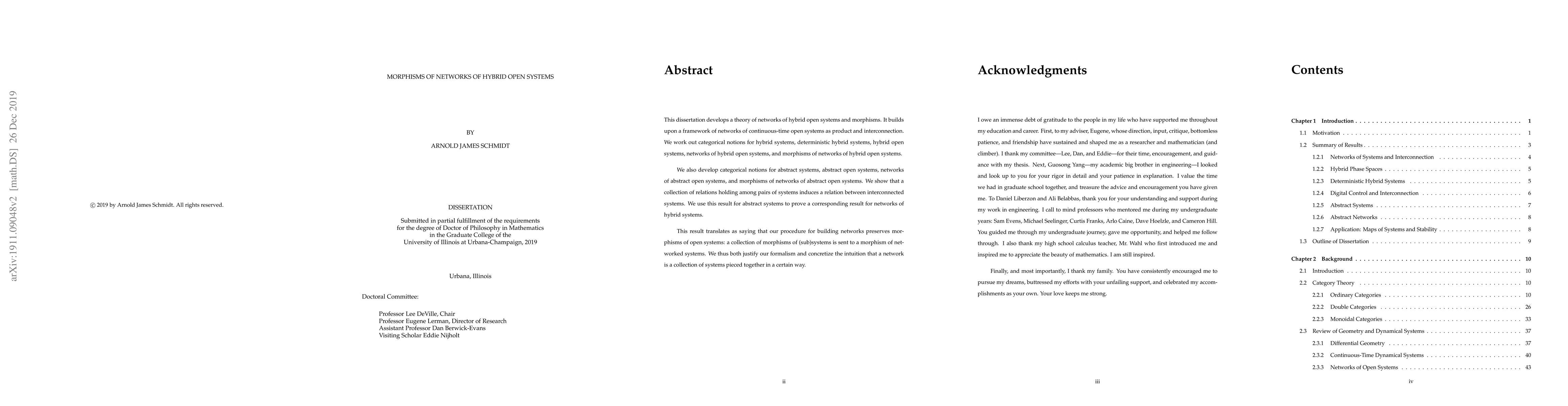 This thesis develops a theory of networks of hybrid open systems and their morphisms, establishing categorical notions for interconnected systems and proving that morphisms of subsystems are preserved in networked systems. The work also extends these concepts to abstract systems, solidifying the intuition that networks are composed of interconnected systems.