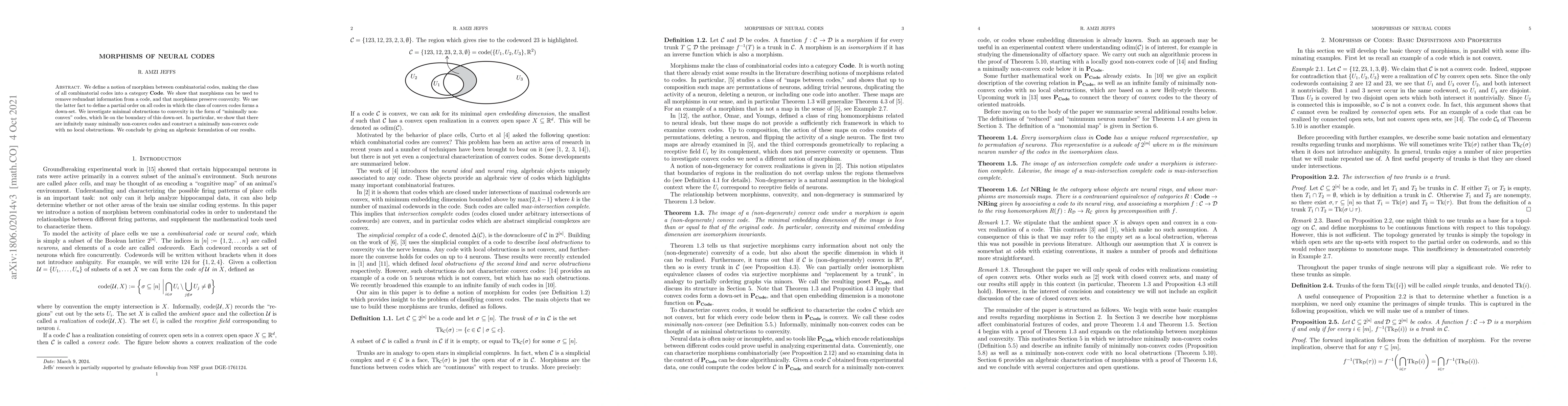This paper introduces morphisms between combinatorial codes, forming a category $\mathbf{Code}$ and using these to remove redundant information and preserve convexity. It proposes a method to identify "minimally non-convex" codes and characterizes all convex codes, implementing Sage code for computational analysis.