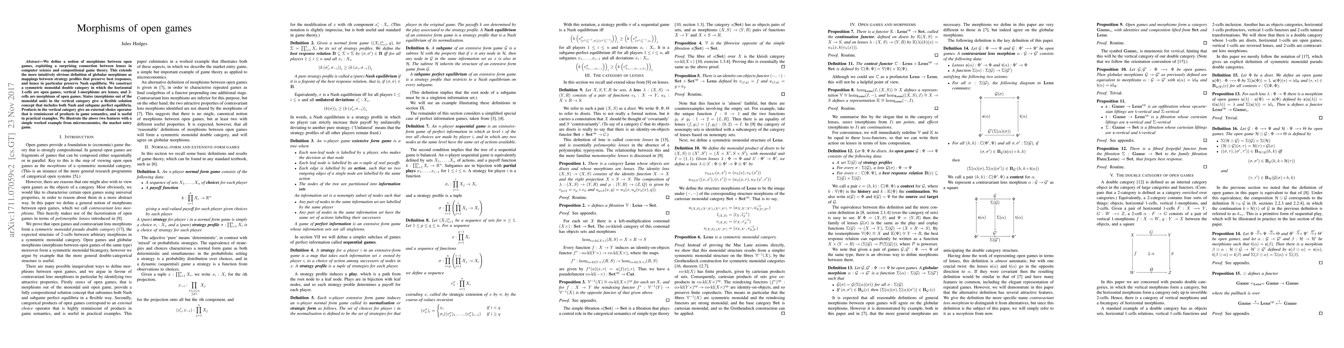 This paper introduces morphisms between open games, linking lenses in computer science with compositional game theory, and constructs a symmetric monoidal double category to model these morphisms. It extends the concept of globular morphisms to include a broader range of strategy profiles and equilibria.