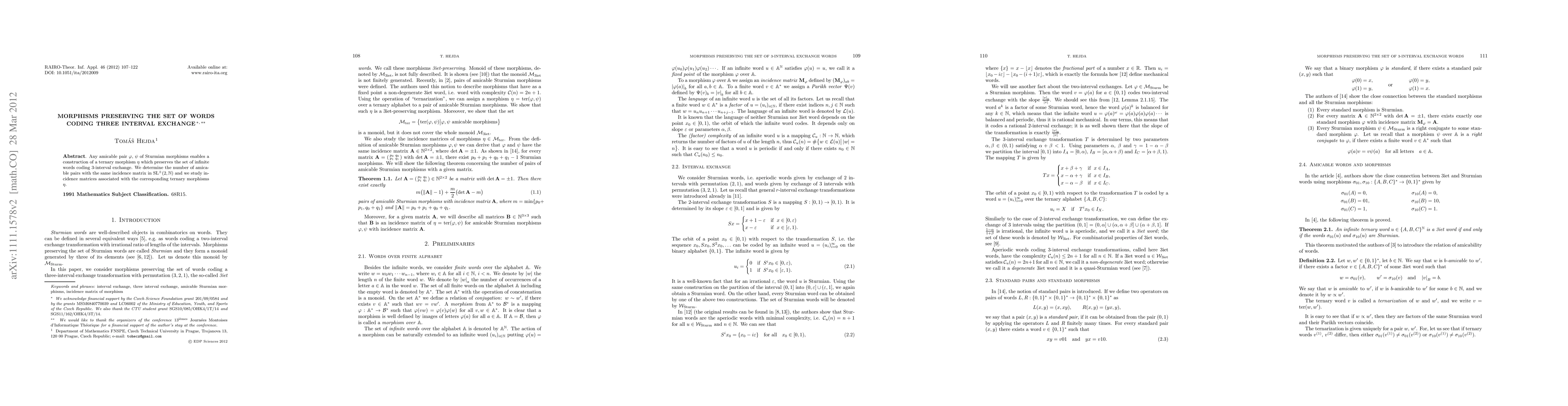 This research contributes to the understanding of morphisms preserving specific sets of words, which has implications in symbolic dynamics, combinatorics, and theoretical computer science, particularly in the study of interval exchange transformations and Sturmian sequences.