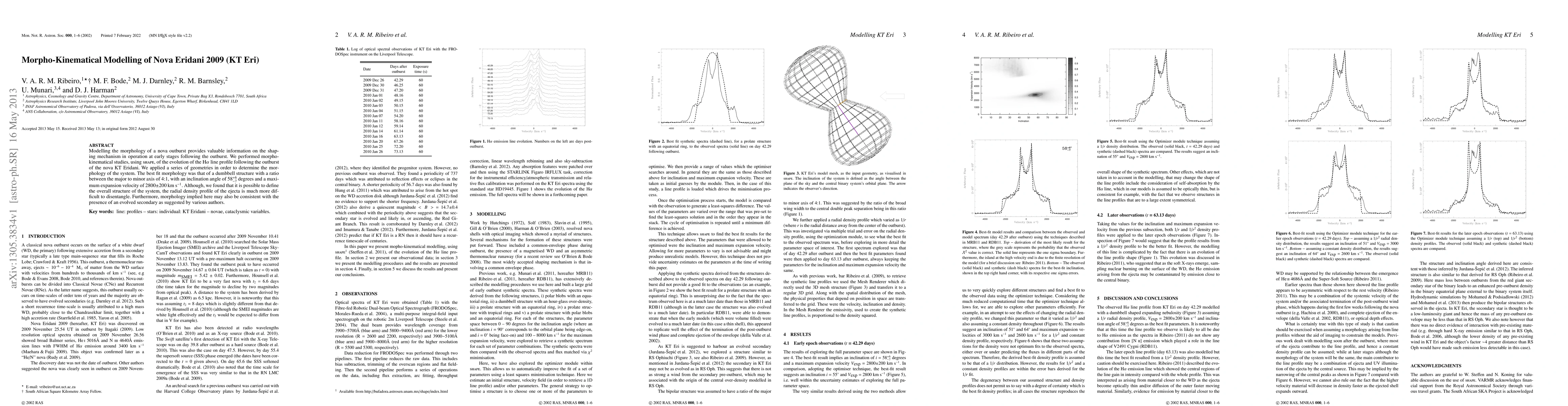 This study models the nova KT Eridani 2009 using morpho-kinematical techniques, revealing a best-fit morphology of a dumbbell structure with a 4:1 axis ratio and an inclination angle of 58°±7°. The complexity of the radial density profile of the ejecta remains unresolved.