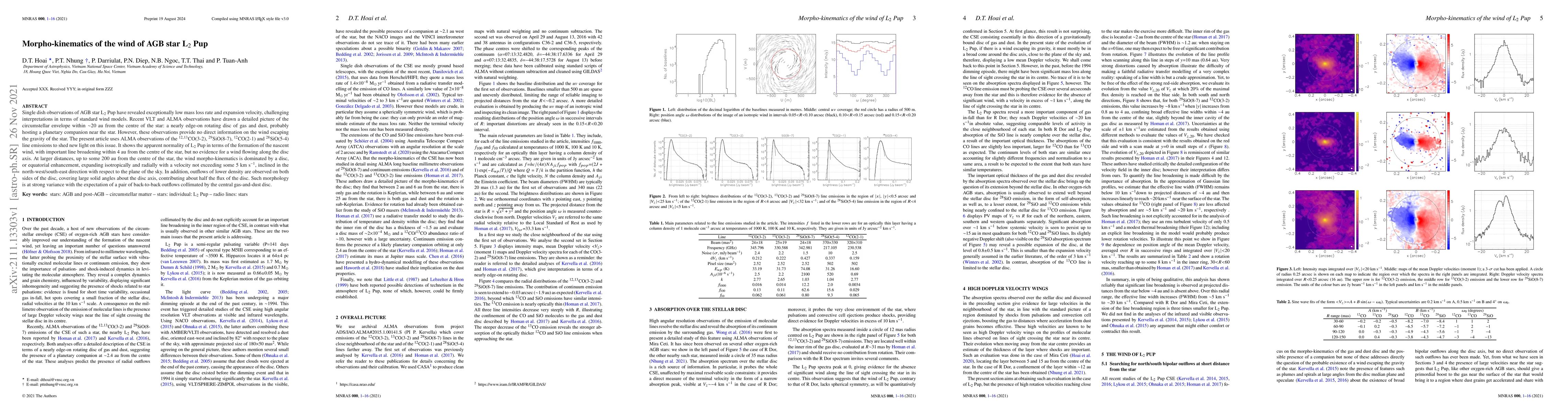 Single dish observations of AGB star L$_2$ Pup have revealed exceptionally low mass loss rate and expansion velocity, challenging interpretations in terms of standard wind models. Recent VLT and ALMA observations have drawn a detailed picture of the circumstellar envelope within $\sim$20 au from the centre of the star: a nearly edge-on rotating disc of gas and dust, probably hosting a planetary companion near the star. However, these observations provide no direct information on the wind escaping the gravity of the star. The present article uses ALMA observations of the $^{12,13}$CO(3-2), $^{29}$SiO(8-7), $^{12}$CO(2-1) and $^{28}$SiO(5-4) line emissions to shed new light on this issue. It shows the apparent normality of L$_2$ Pup in terms of the formation of the nascent wind, with important line broadening within 4 au from the centre of the star, but no evidence for a wind flowing along the disc axis. At larger distances, up to some 200 au from the centre of the star, the wind morpho-kinematics is dominated by a disc, or equatorial enhancement, expanding isotropically and radially with a velocity not exceeding some 5 km s$^{-1}$ , inclined in the north-west/south-east direction with respect to the plane of the sky. In addition, outflows of lower density are observed on both sides of the disc, covering large solid angles about the disc axis, contributing about half the flux of the disc. Such morphology is at strong variance with the expectation of a pair of back-to-back outflows collimated by the central gas-and-dust disc.