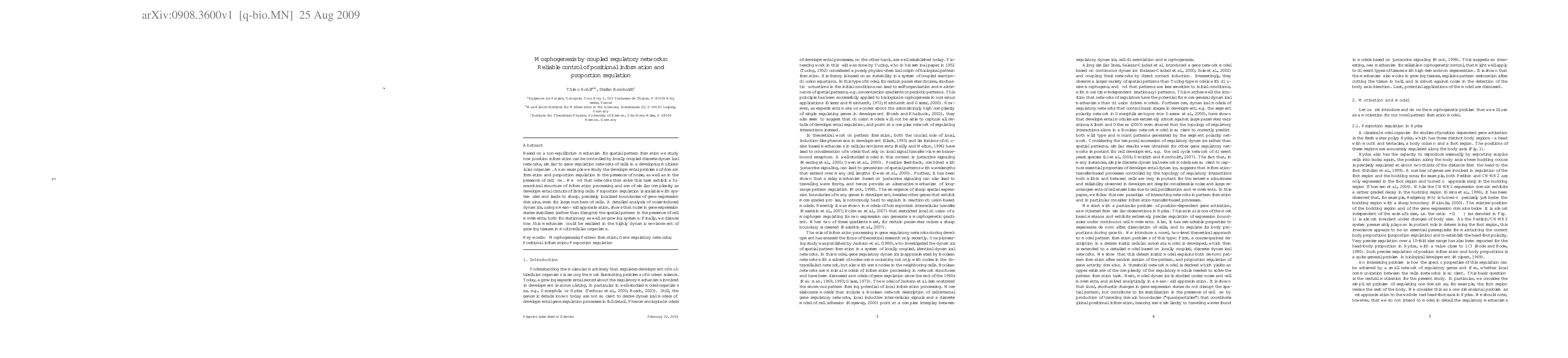 This paper investigates how locally coupled regulatory networks can reliably control positional information and proportion regulation in developmental biology, finding that hierarchical network structures can manage domain formation and proportion regulation even in noisy environments and with cell flow. The results suggest that noise can stabilize spatial patterns in growing tissues, offering insights into the mechanisms underlying multicellular organism development.