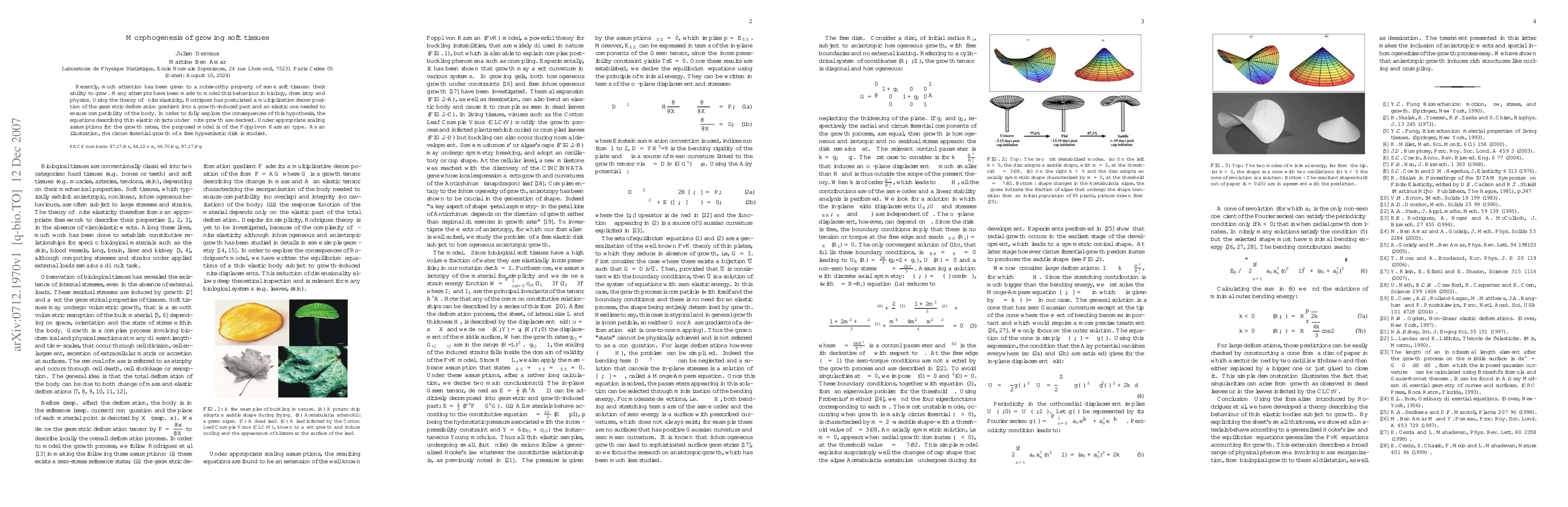This research derives equations for thin elastic objects growing under finite strain, using finite elasticity theory. It illustrates the model with a hyperelastic disk's circumferential growth, contributing to understanding soft tissue morphogenesis.
