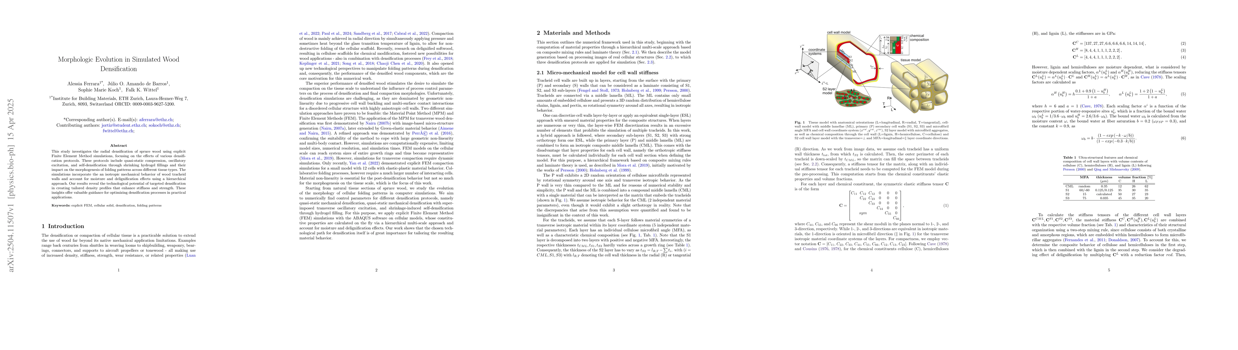 This research distinguishes itself by employing explicit Finite Element Method simulations to study various densification protocols, offering a detailed analysis of folding pattern formation and morphogenesis in wood densification.