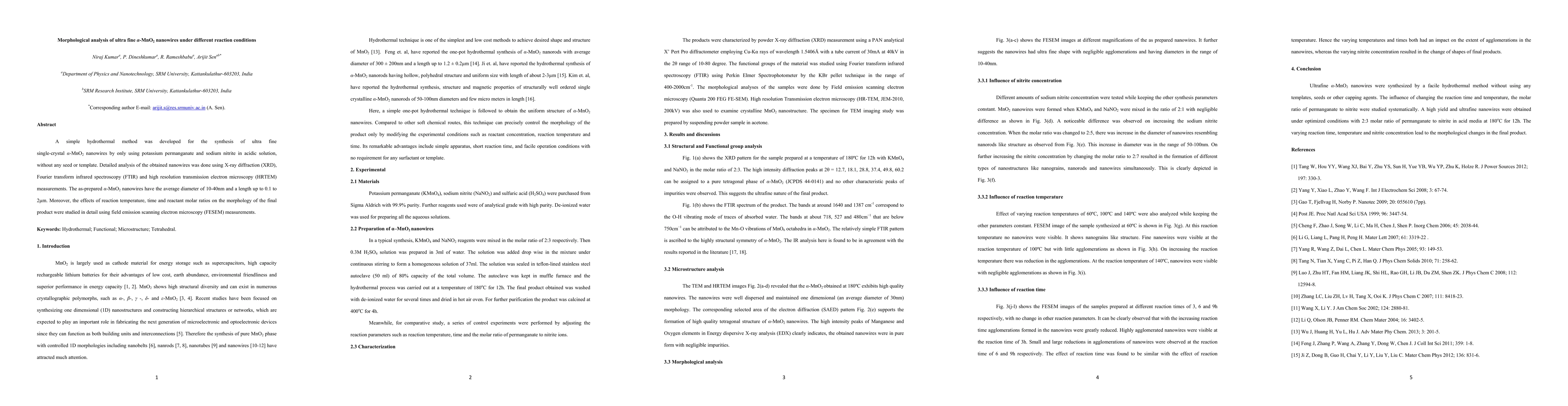 A simple hydrothermal method was developed for the synthesis of ultra fine single-crystal {\alpha}-MnO2 nanowires by only using potassium permanganate and sodium nitrite in acidic solution, without any seed or template. Detailed analysis of the obtained nanowires was done using X-ray diffraction (XRD), Fourier transform infrared spectroscopy (FTIR) and high resolution transmission electron microscopy (HRTEM) measurements. The as-prepared {\alpha}-MnO2 nanowires have the average diameter of 10-40nm and a length up to 0.1 to 2{\mu}m. Moreover, the effects of reaction temperature, time and reactant molar ratios on the morphology of the final product were studied in detail using field emission scanning electron microscopy (FESEM) measurements.