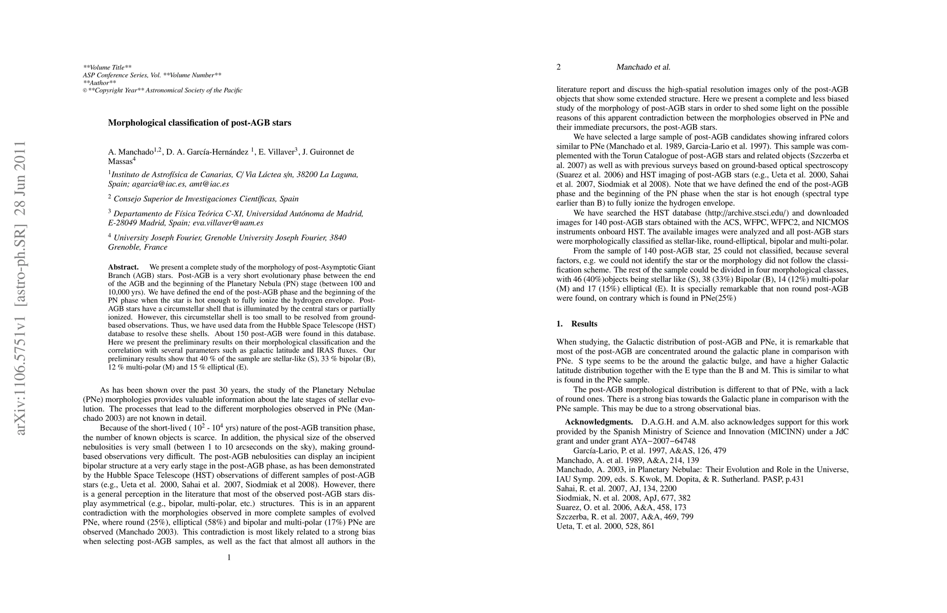 This study investigates the morphology of post-AGB stars using Hubble Space Telescope data, classifying them into stellar-like, bipolar, multi-polar, and elliptical types. Preliminary results indicate 40% are stellar-like, 33% bipolar, 12% multi-polar, and 15% elliptical.