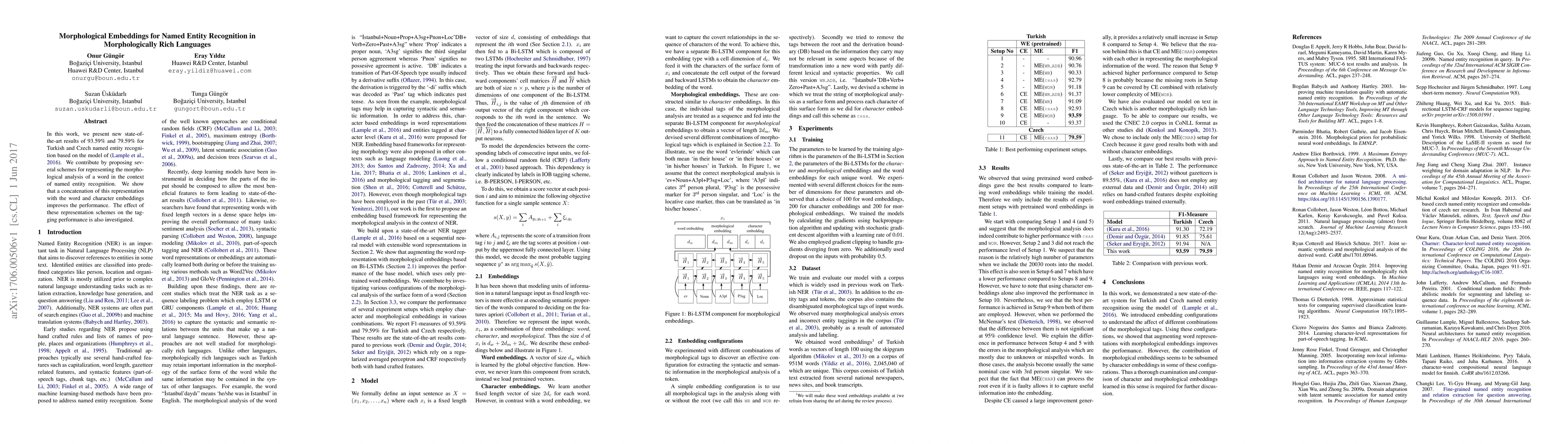 This paper introduces new techniques for named entity recognition in morphologically rich languages like Turkish and Czech, achieving 93.59% and 79.59% accuracy respectively. It proposes schemes to represent morphological analysis in embeddings, which, when combined with word and character embeddings, enhance recognition performance.