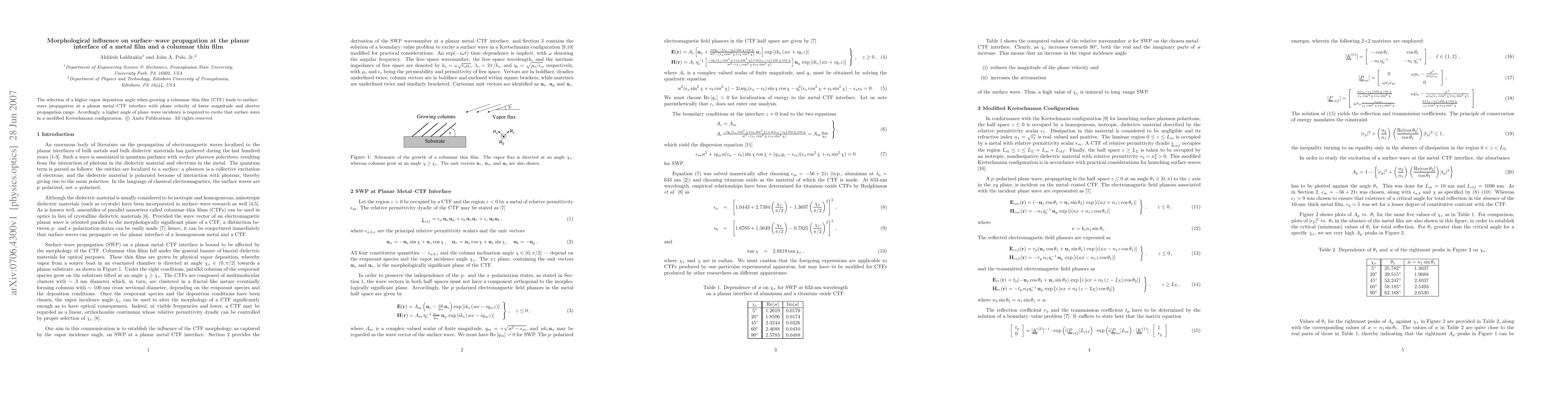 The selection of a higher vapor deposition angle when growing a columnar thin film (CTF) leads to surface-wave propagation at a planar metal-CTF interface with phase velocity of lower magnitude and shorter propagation range. Acordingly, a higher angle of plane-wave incidence is required to excite that surface wave in a modified Kretschmann configuration.