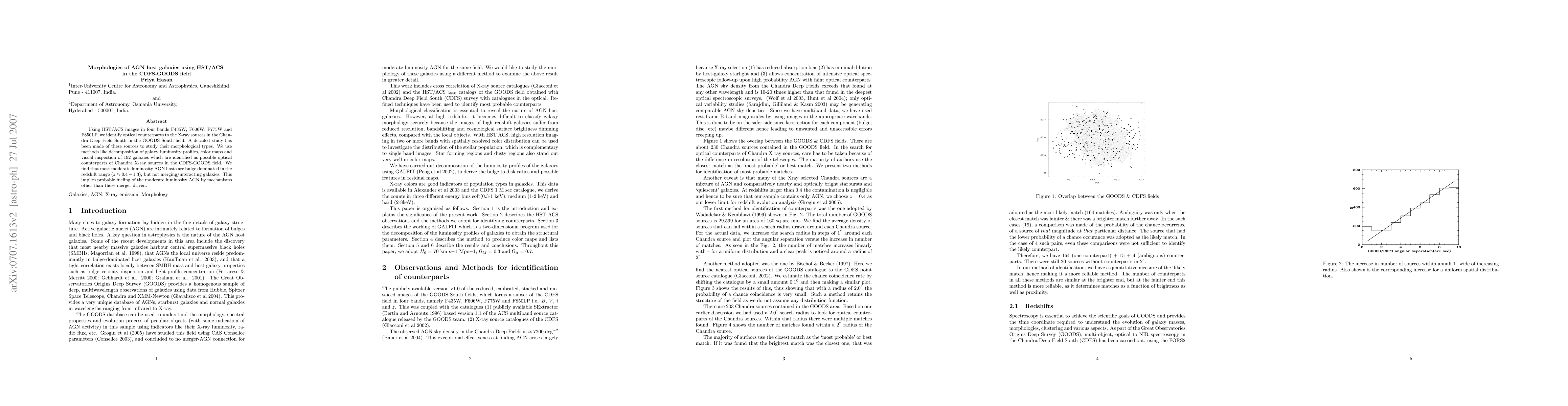 Research identifies optical counterparts to Chandra X-ray sources in the CDFS-GOODS field, finding most moderate luminosity AGN hosts are bulge-dominated with little evidence of merger-driven fueling.