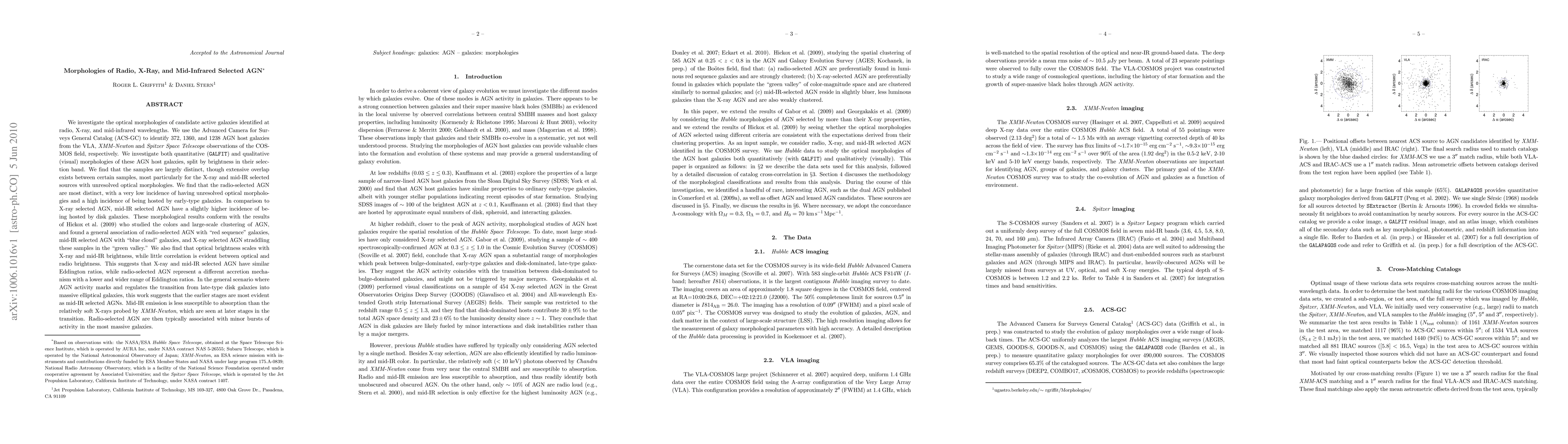 This study analyzes the optical morphologies of AGN identified via radio, X-ray, and mid-infrared wavelengths using the ACS-GC, finding radio-selected AGN predominantly reside in early-type galaxies, while mid-IR selected AGN show a higher incidence in disk galaxies. These results support earlier findings associating radio AGN with "red sequence" galaxies and mid-IR AGN with "blue cloud" galaxies.