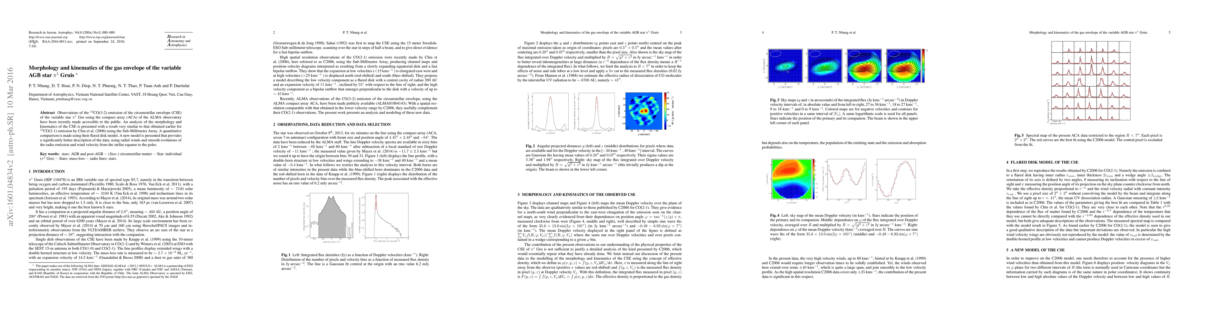 Observations of the $^{12}$CO(3-2) emission of the circumstellar envelope (CSE) of the variable star $\pi^1$ Gru using the compact array (ACA) of the ALMA observatory have been recently made accessible to the public. An analysis of the morphology and kinematics of the CSE is presented with a result very similar to that obtained earlier for $^{12}$CO(2-1) emission by Chiu et al. (2006) using the Sub-Millimeter Array. A quantitative comparison is made using their flared disk model. A new model is presented that provides a significantly better description of the data, using radial winds and smooth evolutions of the radio emission and wind velocity from the stellar equator to the poles.