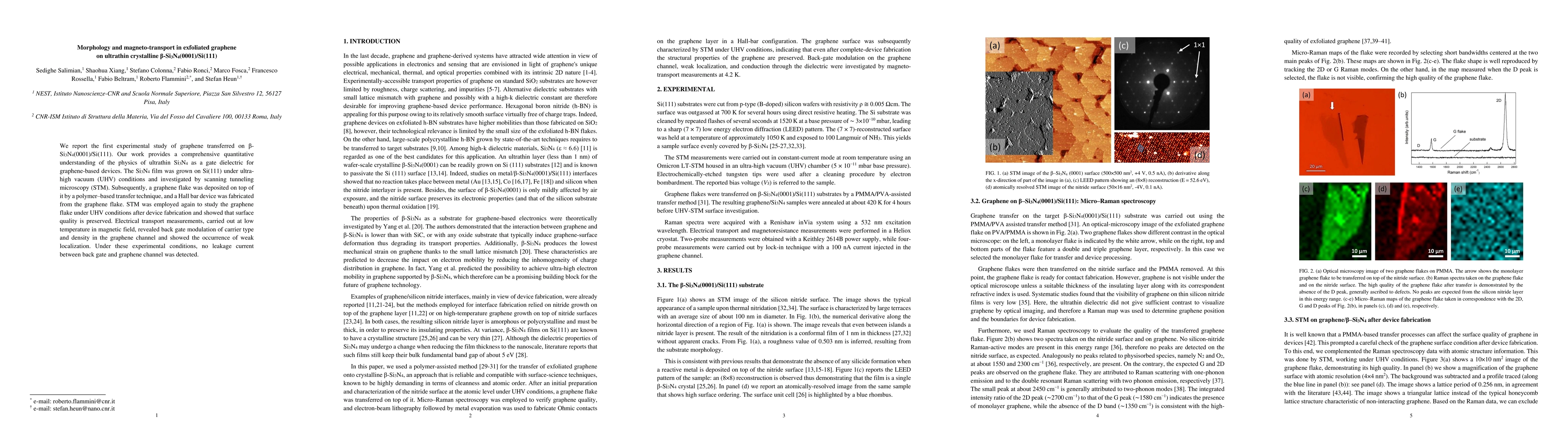 We report the first experimental study of graphene transferred on \b{eta}-Si3N4(0001)/Si(111). Our work provides a comprehensive quantitative understanding of the physics of ultrathin Si3N4 as a gate dielectric for graphene-based devices. The Si3N4 film was grown on Si(111) under ultra-high vacuum (UHV) conditions and investigated by scanning tunneling microscopy (STM). Subsequently, a graphene flake was deposited on top of it by a polymer-based transfer technique, and a Hall bar device was fabricated from the graphene flake. STM was employed again to study the graphene flake under UHV conditions after device fabrication and showed that surface quality is preserved. Electrical transport measurements, carried out at low temperature in magnetic field, revealed back gate modulation of carrier type and density in the graphene channel and showed the occurrence of weak localization. Under these experimental conditions, no leakage current between back gate and graphene channel was detected.