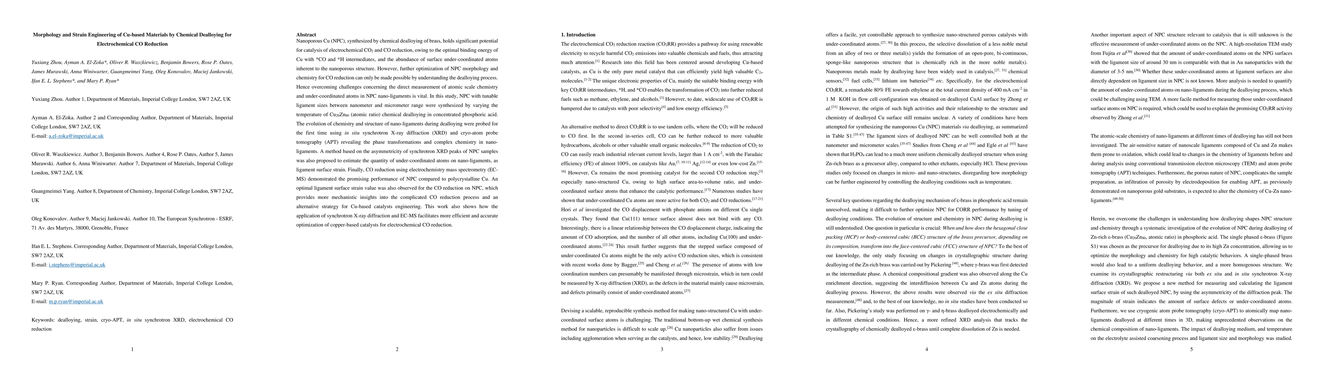 This work is novel in its application of synchrotron XRD and EC-MS to probe the dealloying process and optimize Cu-based catalysts for electrochemical CO reduction, providing insights into the role of ligament surface strain in catalytic performance.