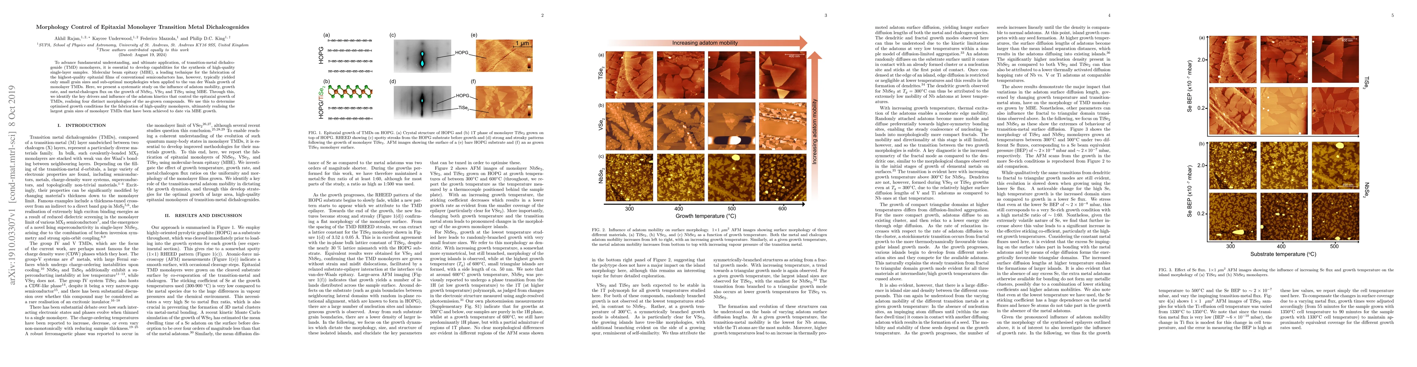 This paper investigates the morphology control of epitaxial monolayer transition metal dichalcogenides (TMDs) using molecular beam epitaxy (MBE), identifying key factors like adatom mobility and growth rate that influence the epitaxial growth. The study optimizes growth conditions to achieve the largest grain sizes for monolayer TMDs via MBE.