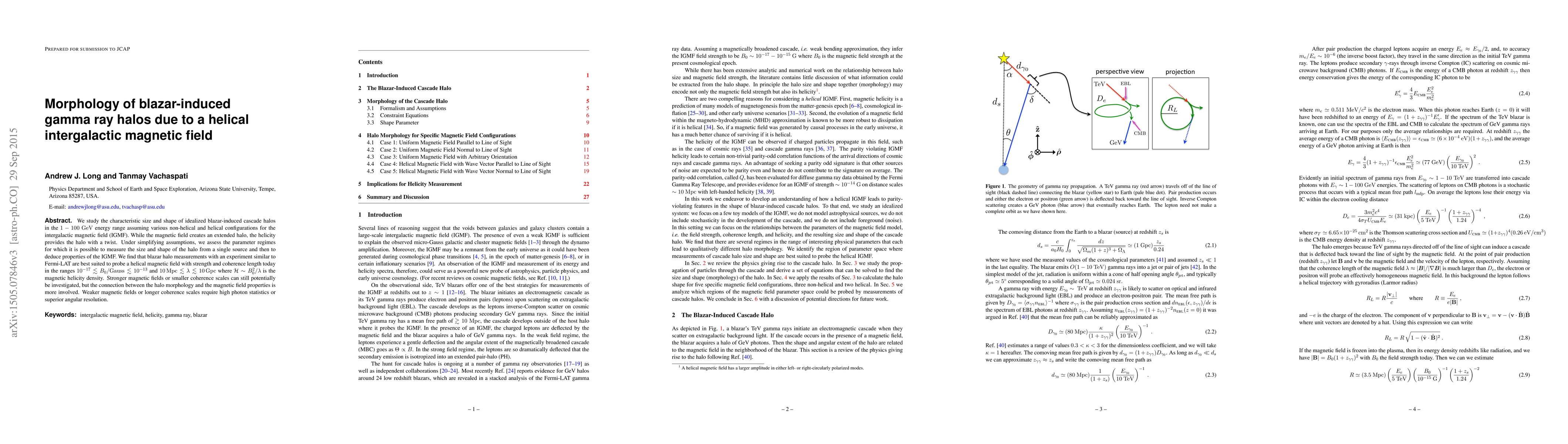 We study the characteristic size and shape of idealized blazar-induced cascade halos in the $1-100 \, {\rm GeV}$ energy range assuming various non-helical and helical configurations for the intergalactic magnetic field (IGMF). While the magnetic field creates an extended halo, the helicity provides the halo with a twist. Under simplifying assumptions, we assess the parameter regimes for which it is possible to measure the size and shape of the halo from a single source and then to deduce properties of the IGMF. We find that blazar halo measurements with an experiment similar to Fermi-LAT are best suited to probe a helical magnetic field with strength and coherence length today in the ranges $10^{-17} \lesssim B_{0} / {\rm Gauss} \lesssim 10^{-13}$ and $10 \, {\rm Mpc} \lesssim \lambda \lesssim 10 \, {\rm Gpc}$ where $\mathcal{H} \sim B_0^2 / \lambda$ is the magnetic helicity density. Stronger magnetic fields or smaller coherence scales can still potentially be investigated, but the connection between the halo morphology and the magnetic field properties is more involved. Weaker magnetic fields or longer coherence scales require high photon statistics or superior angular resolution.