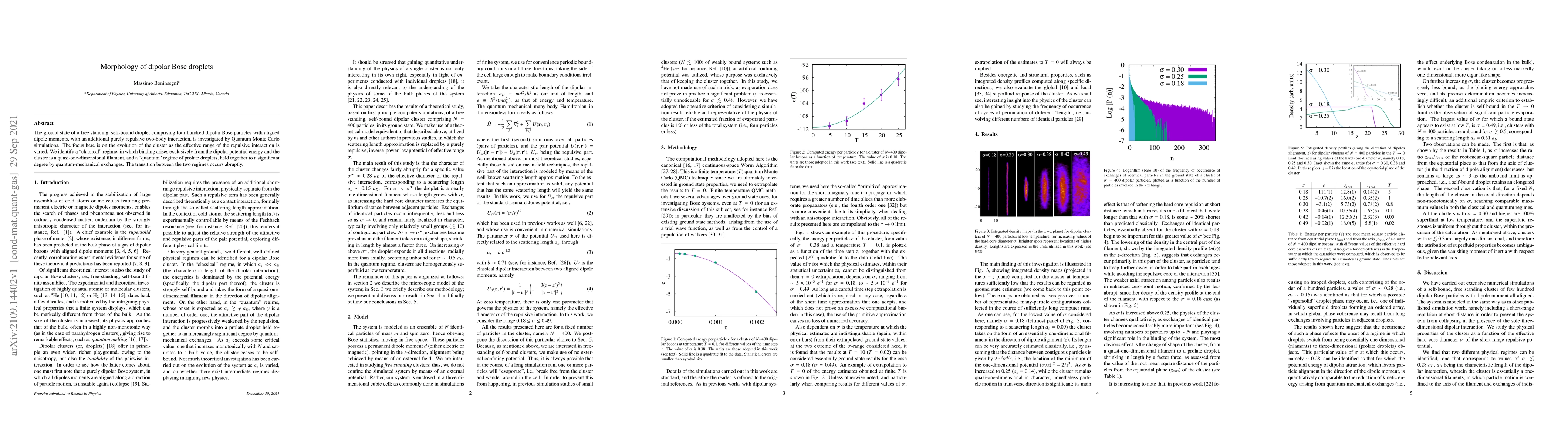 Researchers studied a cluster of 400 dipolar Bose particles that behave like a chain in one state and droplets in another, finding a sudden transition between these two states when the repulsive interaction strength is varied.