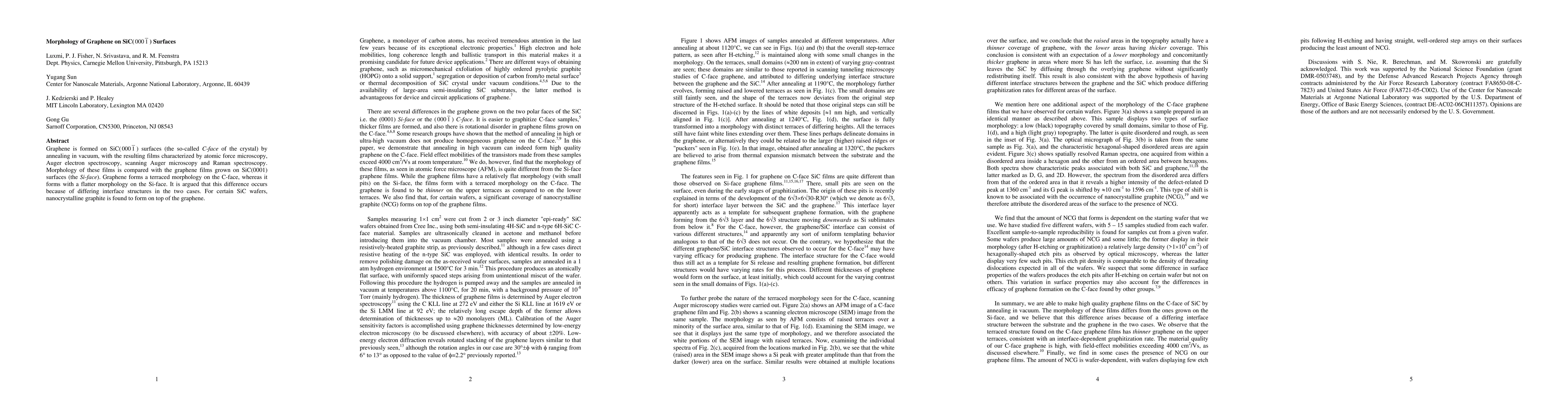 The paper presents detailed AFM, Auger electron spectroscopy, and Raman spectroscopy analyses to demonstrate the terraced morphology of graphene on SiC(000-1) surfaces and its relation to varying interface structures.