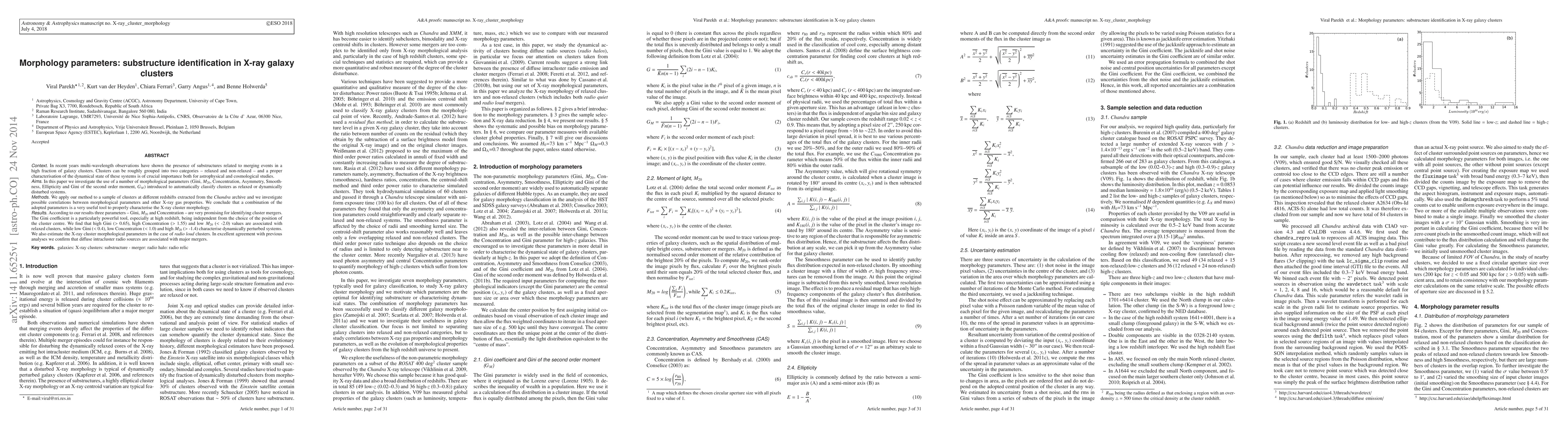 Researchers developed a method to classify galaxy clusters as relaxed or dynamically disturbed using X-ray morphology parameters, finding that Gini, Concentration, and M20 are promising indicators of cluster mergers.