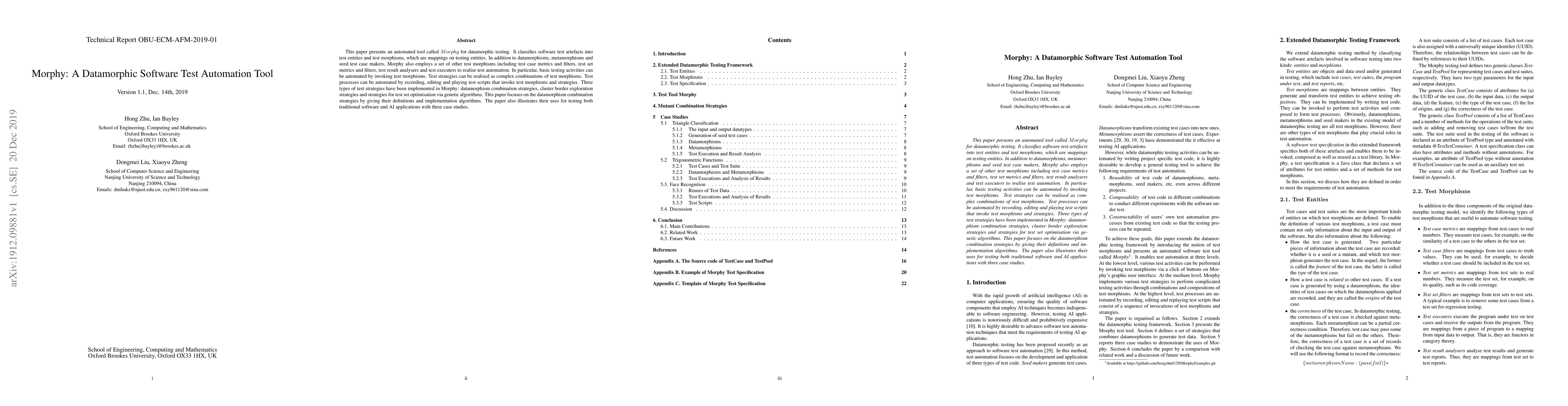 This paper introduces Morphy, an automated tool for datamorphic testing, which classifies test artefacts into entities and morphisms, enabling the automation of basic testing activities and complex test strategies through various test morphisms. It particularly focuses on datamorphism combination strategies and demonstrates their application in testing traditional software and AI applications.