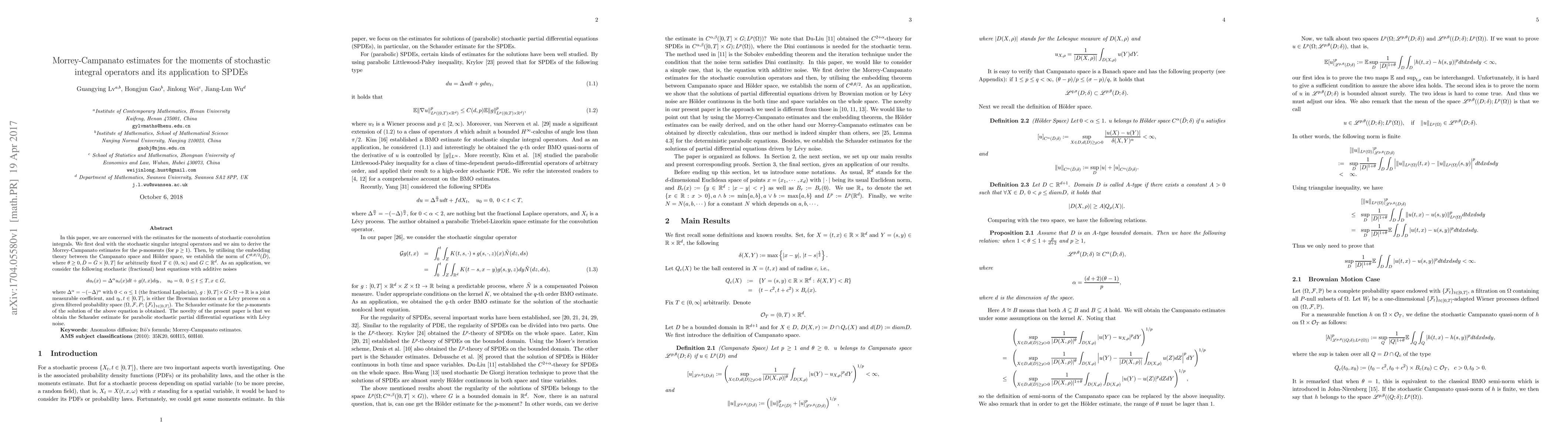 This paper derives Morrey-Campanato estimates for the $p$-moments of stochastic singular integral operators and applies these results to stochastic partial differential equations (SPDEs). The authors establish the norm of $C^{\theta,\theta/2}(\bar D)$ and obtain Schauder estimates for the $p$-moments of solutions to stochastic heat equations with fractional Laplacian and Lévy noise.
