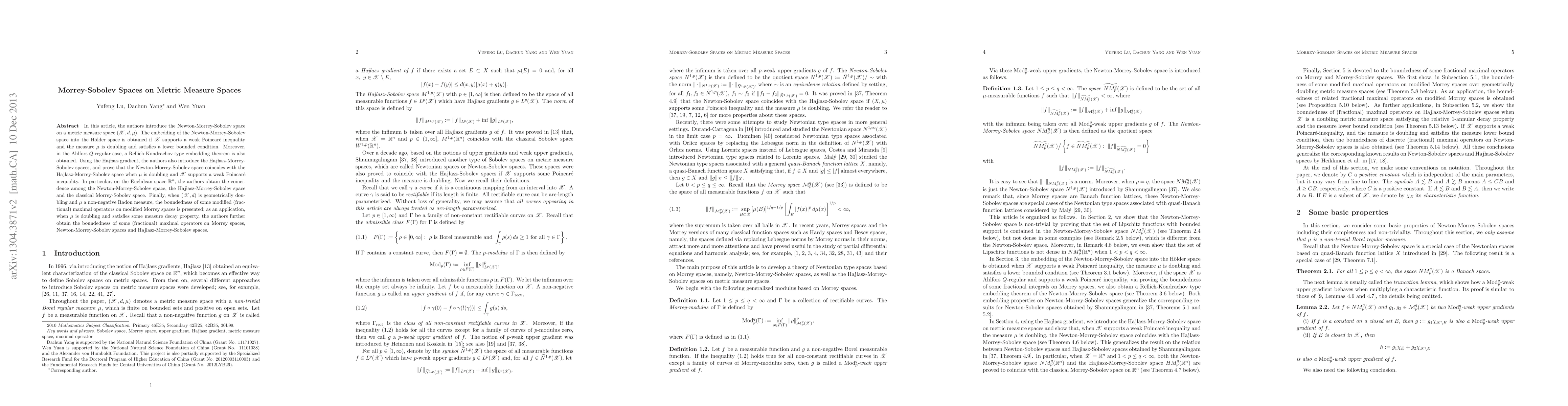 In this article, the authors introduce the Newton-Morrey-Sobolev space on a metric measure space $(\mathscr{X},d,\mu)$. The embedding of the Newton-Morrey-Sobolev space into the H\"older space is obtained if $\mathscr{X}$ supports a weak Poincar\'e inequality and the measure $\mu$ is doubling and satisfies a lower bounded condition. Moreover, in the Ahlfors $Q$-regular case, a Rellich-Kondrachov type embedding theorem is also obtained. Using the Haj{\l}asz gradient, the authors also introduce the Haj{\l}asz-Morrey-Sobolev spaces, and prove that the Newton-Morrey-Sobolev space coincides with the Haj{\l}asz-Morrey-Sobolev space when $\mu$ is doubling and $\mathscr{X}$ supports a weak Poincar\'e inequality. In particular, on the Euclidean space ${\mathbb R}^n$, the authors obtain the coincidence among the Newton-Morrey-Sobolev space, the Haj{\l}asz-Morrey-Sobolev space and the classical Morrey-Sobolev space. Finally, when $(\mathscr{X},d)$ is geometrically doubling and $\mu$ a non-negative Radon measure, the boundedness of some modified (fractional) maximal operators on modified Morrey spaces is presented; as an application, when $\mu$ is doubling and satisfies some measure decay property, the authors further obtain the boundedness of some (fractional) maximal operators on Morrey spaces, Newton-Morrey-Sobolev spaces and Haj{\l}asz-Morrey-Sobolev spaces.