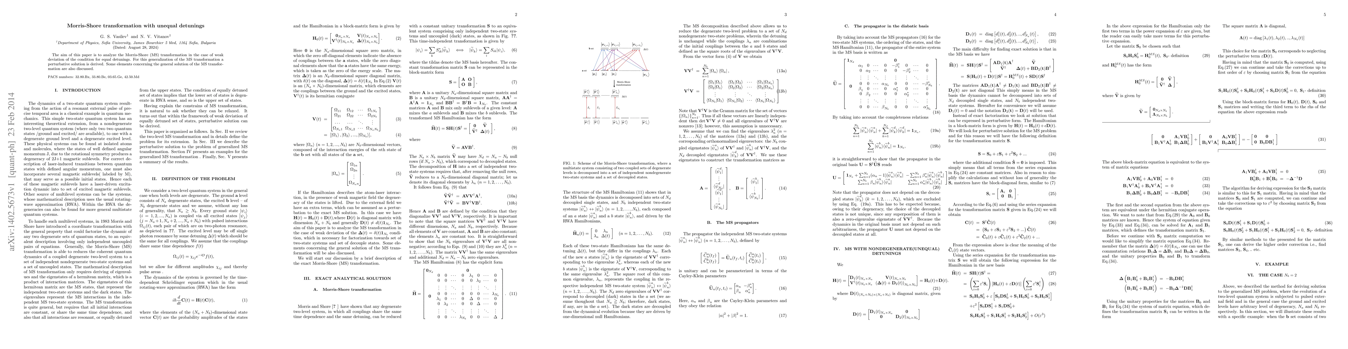 The aim of this paper is to analyze the MS transformation in the case of weak deviation of the condition for equal detunings, which in necessary for factorization towards set of two-state systems and set of decouple states. Some elements concerning the general solution of the MS transformation will be also discussed.