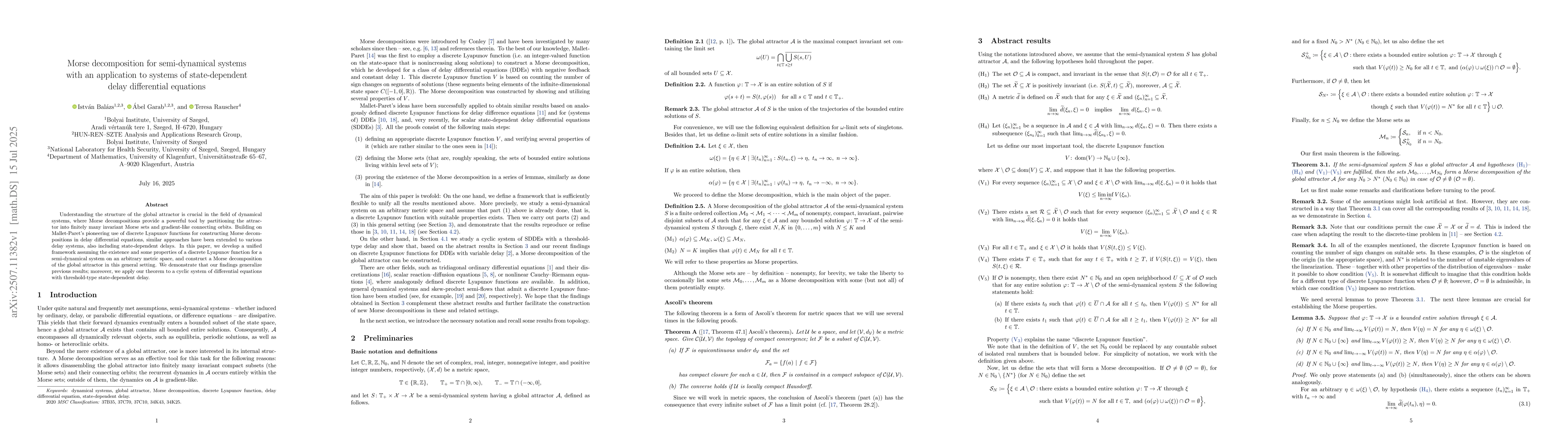 Understanding the structure of the global attractor is crucial in the field of dynamical systems, where Morse decompositions provide a powerful tool by partitioning the attractor into finitely many invariant Morse sets and gradient-like connecting orbits. Building on Mallet-Paret's pioneering use of discrete Lyapunov functions for constructing Morse decompositions in delay differential equations, similar approaches have been extended to various delay systems, also including state-dependent delays. In this paper, we develop a unified framework assuming the existence and some properties of a discrete Lyapunov function for a semi-dynamical system on an arbitrary metric space, and construct a Morse decomposition of the global attractor in this general setting. We demonstrate that our findings generalize previous results; moreover, we apply our theorem to a cyclic system of differential equations with threshold-type state-dependent delay.