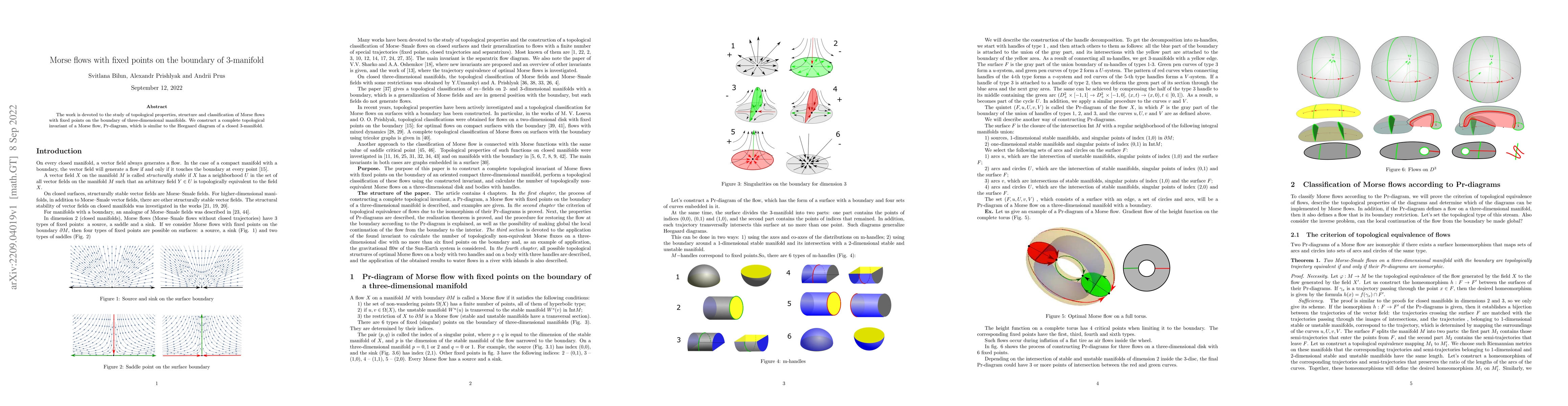 The paper investigates Morse flows on the boundary of 3-manifolds, focusing on their topological properties and classification. It introduces a Pr-diagram, a topological invariant analogous to the Heegaard diagram, for complete classification.