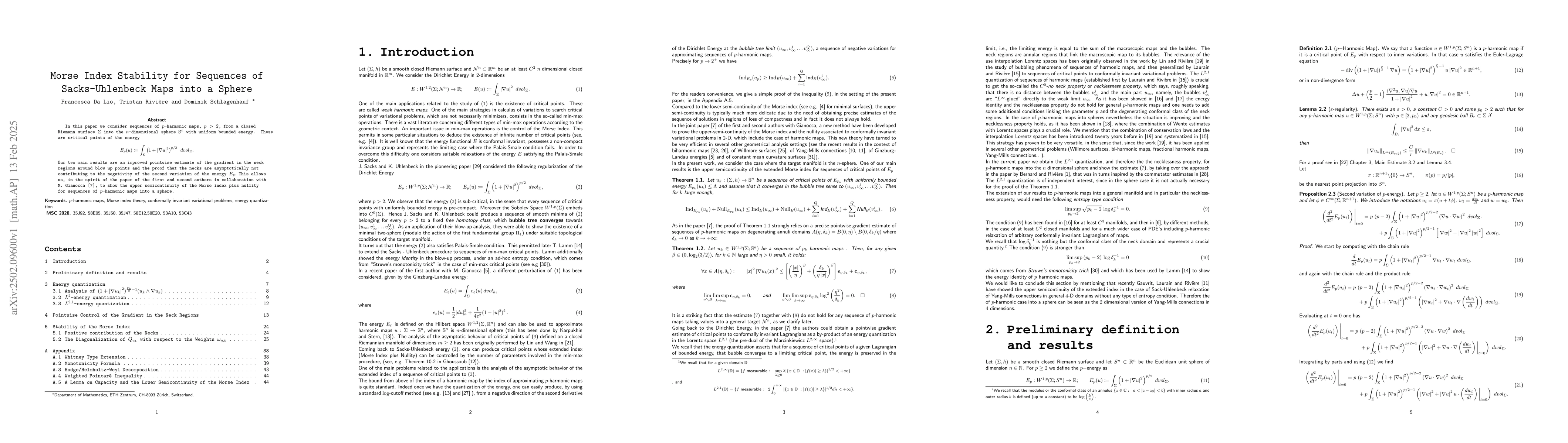 The work extends previous results by providing sharper estimates and broader applicability of Morse index stability for p-harmonic maps into spheres.