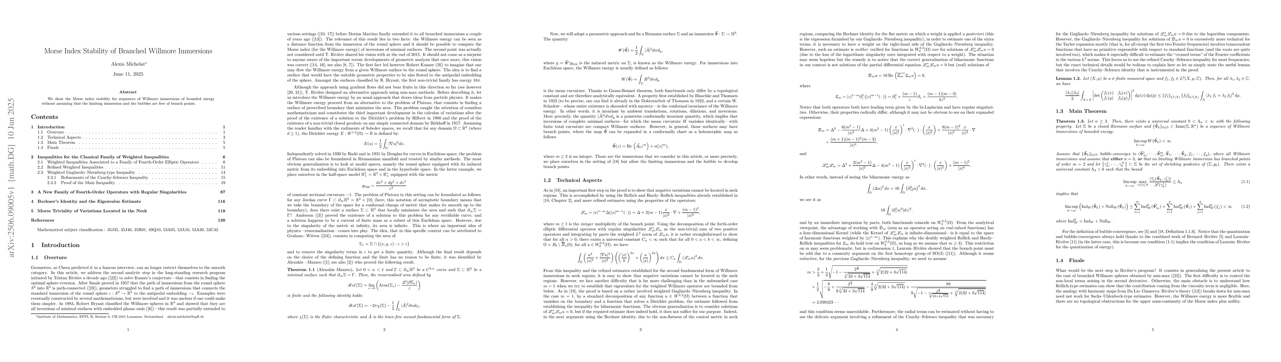 Researchers prove that certain types of geometric shapes, called Willmore immersions, remain stable under change without assuming they have no sharp points or branches. This finding has implications for understanding the behavior of complex shapes in geometry.