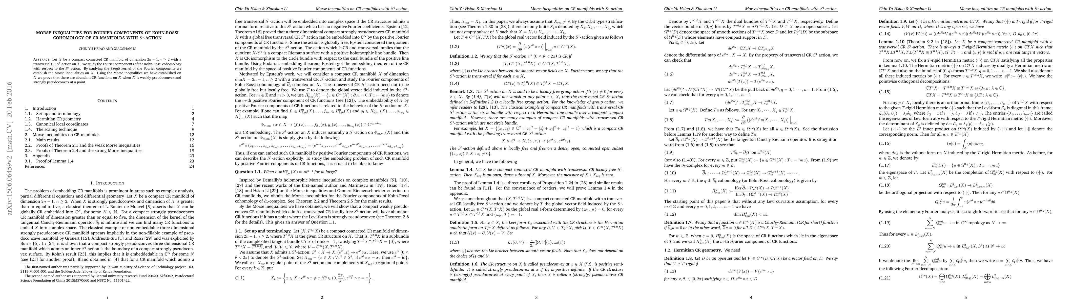 Let $X$ be a compact connected CR manifold of dimension $2n-1, n\geq 2$ with a transversal CR $S^1$-action on $X$. We study the Fourier components of the Kohn-Rossi cohomology with respect to the $S^1$-action. By studying the Szeg\"o kernel of the Fourier components we establish the Morse inequalities on $X$. Using the Morse inequalities we have established on $X$ we prove that there are abundant CR functions on $X$ when $X$ is weakly pseudoconvex and strongly pseudoconvex at a point.