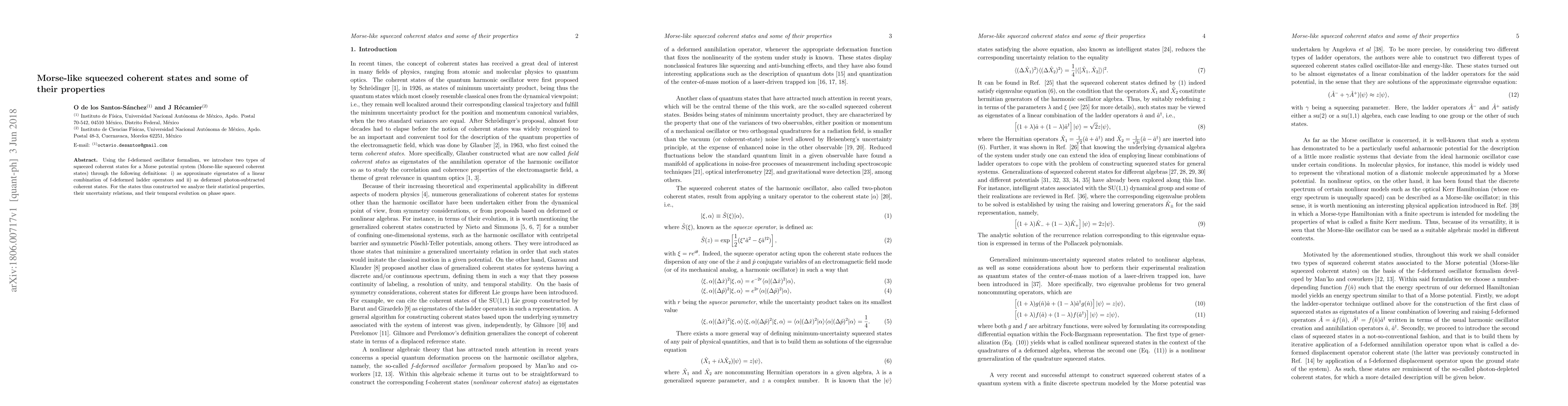 The research introduces Morse-like squeezed coherent states using the f-deformed oscillator formalism, constructed as approximate eigenstates of f-deformed ladder operators and as deformed photon-subtracted coherent states.