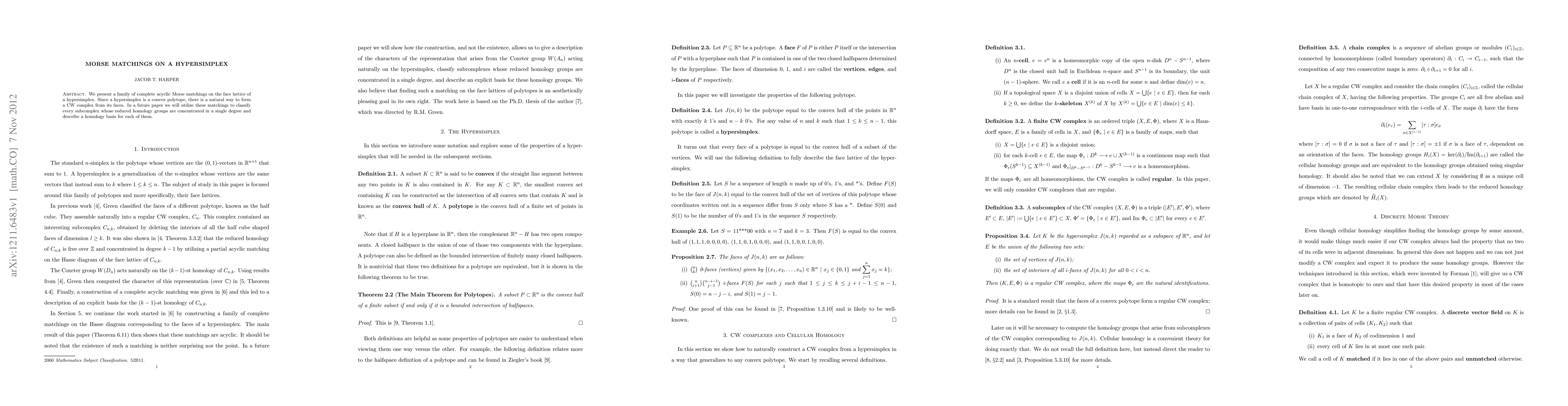 This paper introduces complete acyclic Morse matchings on the face lattice of a hypersimplex, forming a CW complex from its faces, and plans to use these matchings to classify subcomplexes with homology concentrated in a single degree in a future work.