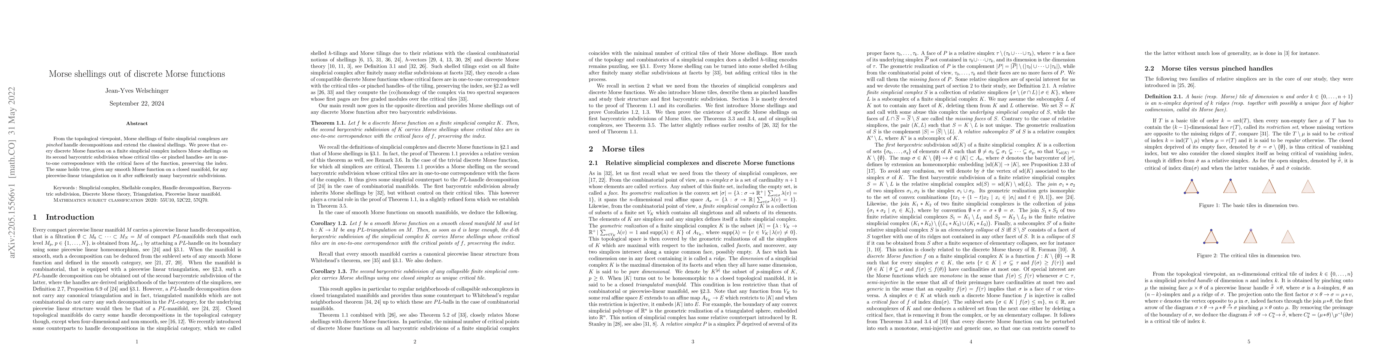 Summary: This paper explores how discrete Morse functions induce Morse shellings on the second barycentric subdivision of finite simplicial complexes, correlating critical tiles with critical faces of the function while preserving index. It extends this result to smooth Morse functions on closed manifolds through piecewise-linear triangulations after multiple subdivisions.