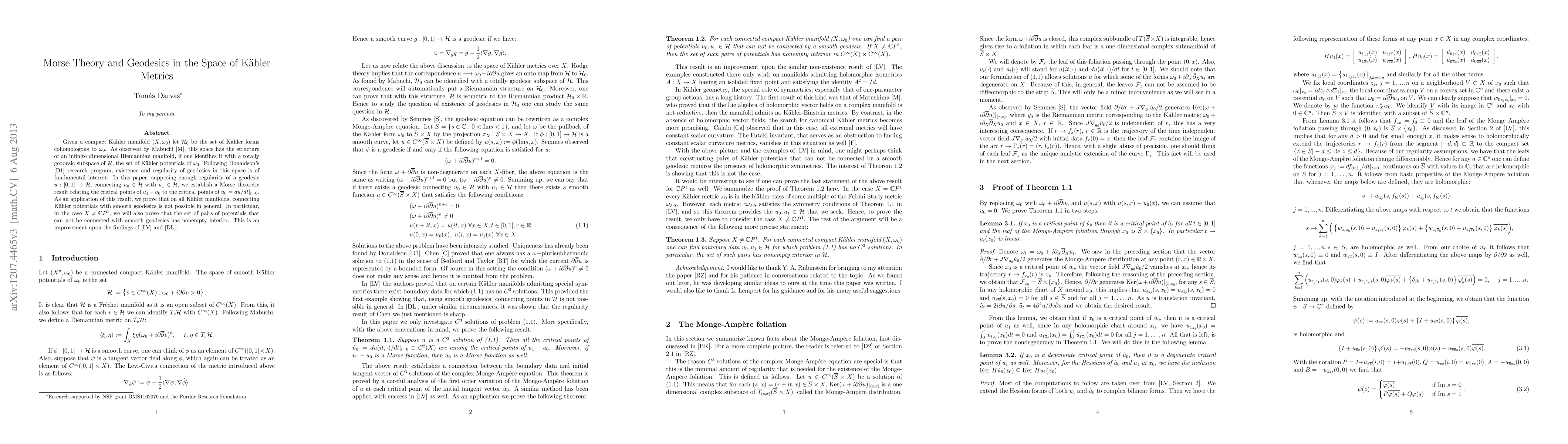 This paper uses Morse theory to study geodesics in the space of Kähler metrics on compact Kähler manifolds. It shows that connecting Kähler potentials with smooth geodesics is generally impossible, especially for manifolds other than complex projective space, where the set of such pairs has a nonempty interior.