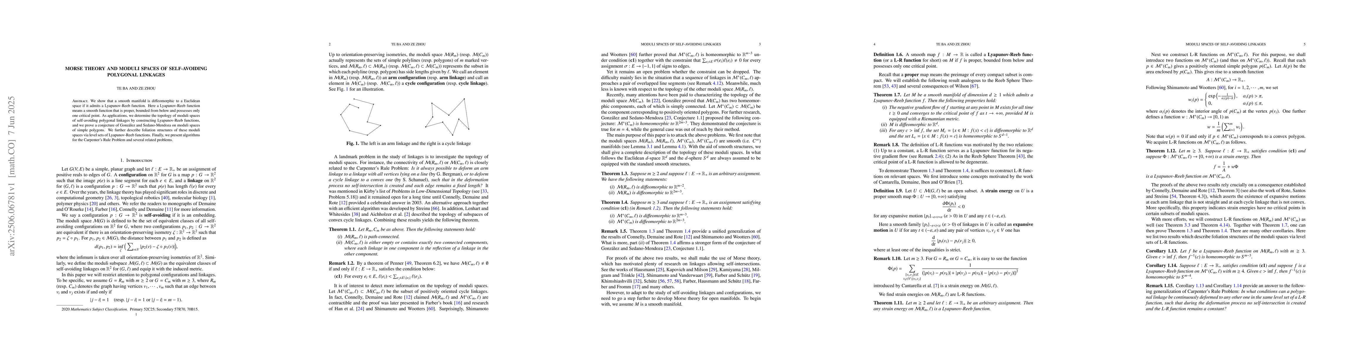 Researchers show that a smooth manifold is diffeomorphic to Euclidean space if it has a specific type of function called a Lyapunov-Reeb function, which helps determine the topology of moduli spaces for self-avoiding polygonal linkages.