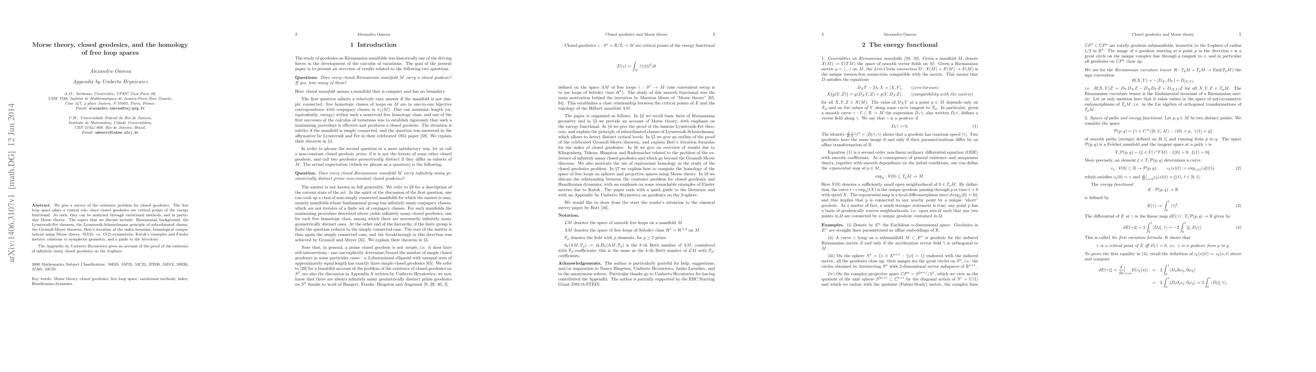 This survey paper explores the interplay between Morse theory, closed geodesics, and the homology of free loop spaces, emphasizing the role of variational methods in analyzing critical points of the energy functional. It covers foundational theorems, symmetries, and connections to symplectic geometry, with an appendix detailing the existence of infinitely many closed geodesics on the 2-sphere.