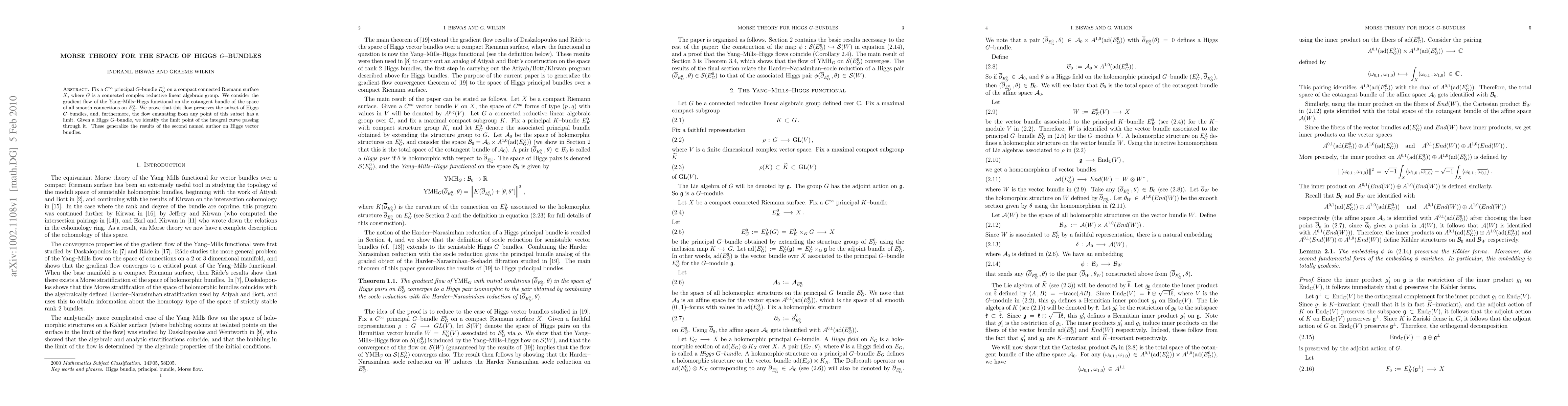 This paper applies Morse theory to the space of Higgs $G$-bundles, proving that the gradient flow of the Yang-Mills-Higgs functional on the cotangent bundle of smooth connections preserves Higgs $G$-bundles and converges to a limit point for each initial bundle.