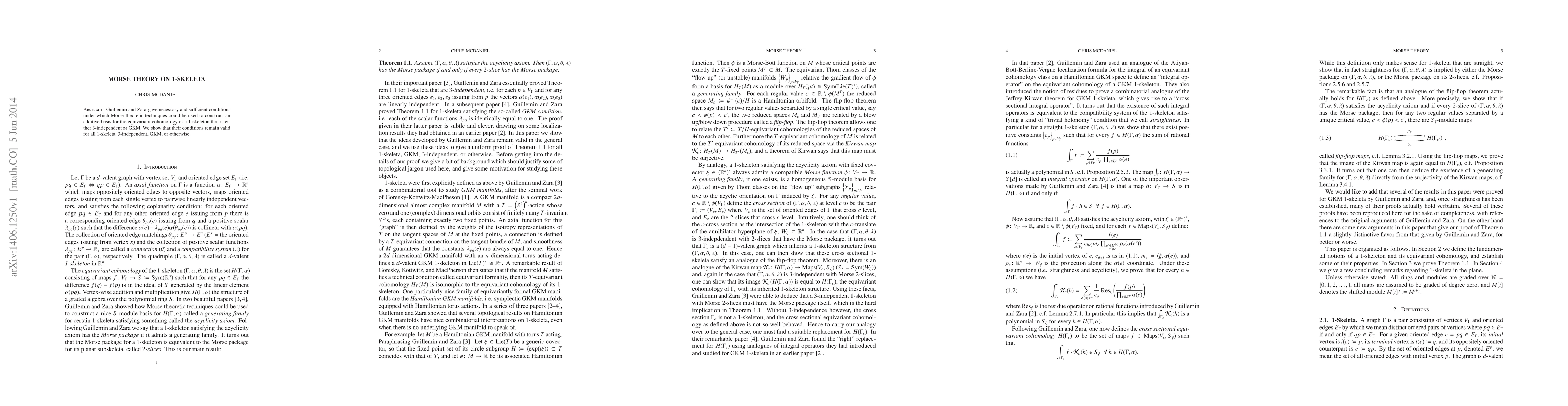 Guillemin and Zara gave necessary and sufficient conditions under which Morse theoretic techniques could be used to construct an additive basis for the equivariant cohomology of a 1-skeleton that is either 3-independent or GKM. We show that their conditions remain valid for all 1-skeleta, 3-independent, GKM, or otherwise.