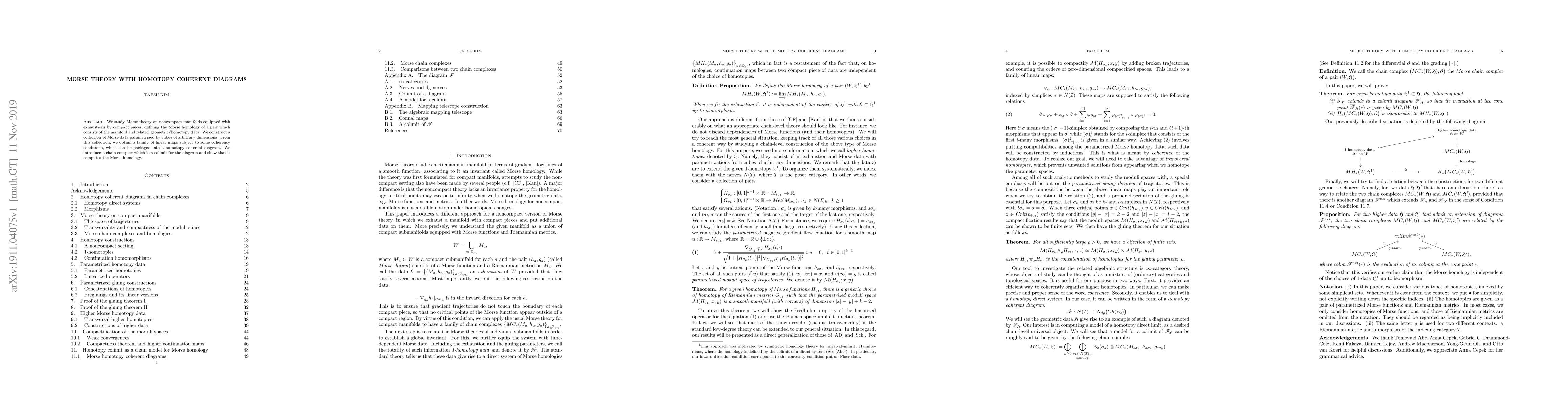 This paper develops Morse theory on noncompact manifolds using homotopy coherent diagrams, defining Morse homology for pairs of manifolds and their associated data, and constructing a chain complex that computes the Morse homology via a colimit of a family of linear maps.