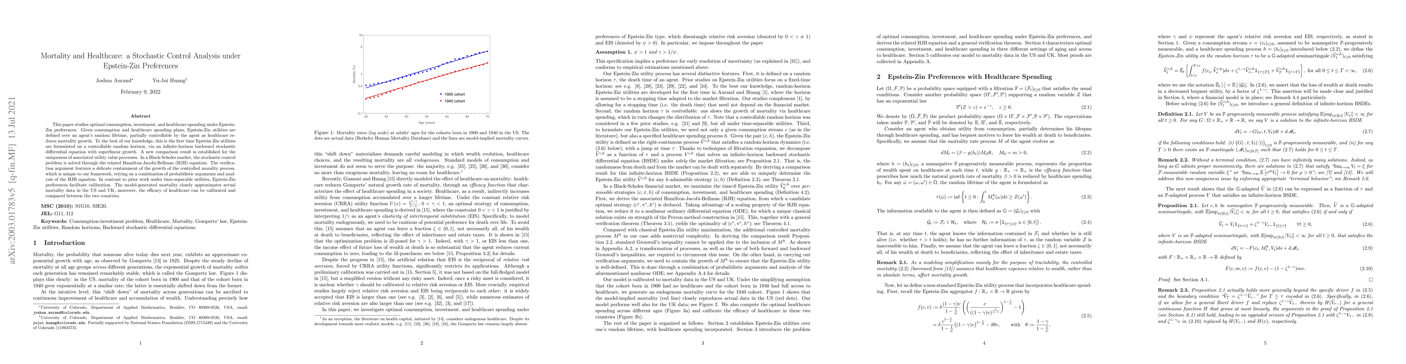 This paper develops a stochastic control model under Epstein-Zin preferences to optimize consumption, investment, and healthcare spending, showing how healthcare can reduce mortality growth. The model's unique utility formulation on a controllable random horizon leads to a new comparison result for utility value processes, and it closely matches real mortality data in the US and UK.