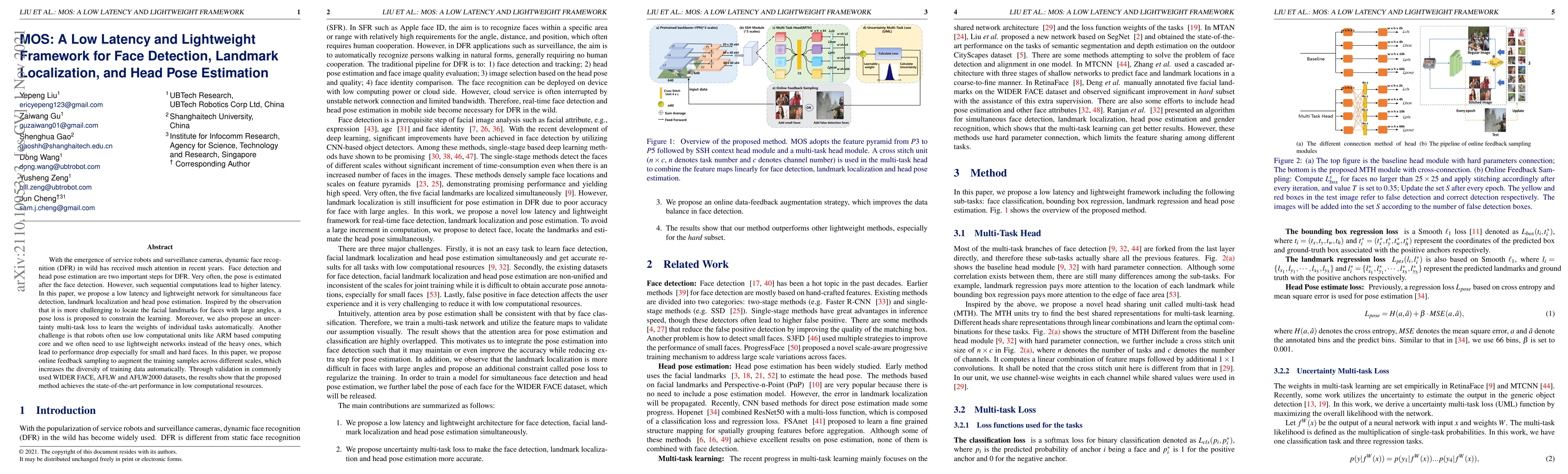 A lightweight framework for face detection, landmark localization, and head pose estimation with low latency and improved performance on small faces, using online feedback sampling to increase training data diversity.
