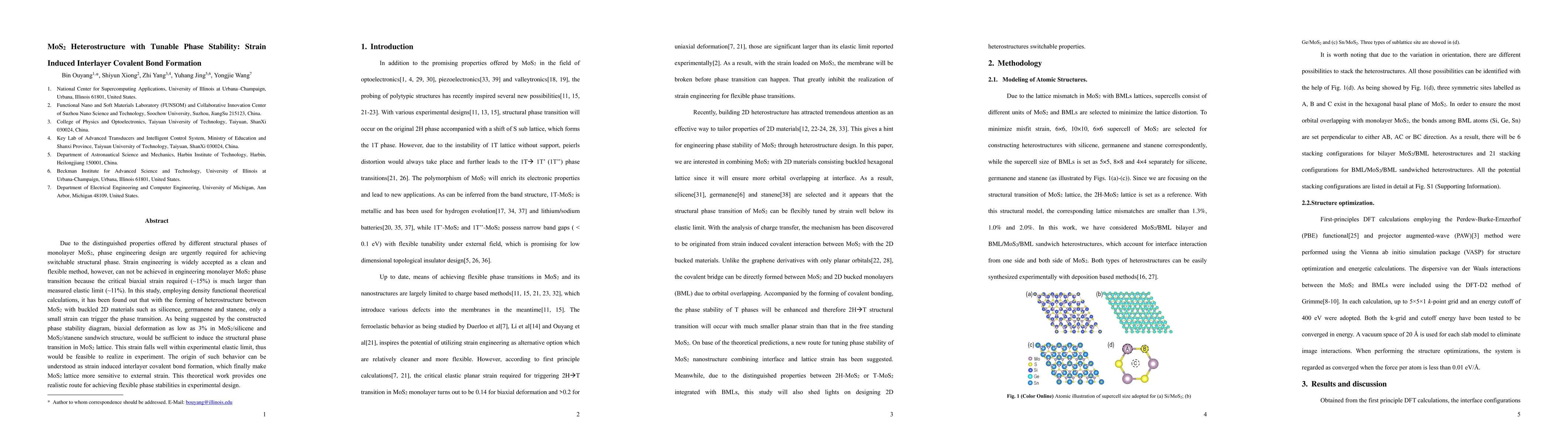 This paper explores how forming heterostructures with monolayer MoS2 and buckled 2D materials like silicene and stanene can induce phase transitions in MoS2 with minimal strain, facilitated by interlayer covalent bond formation. Density functional calculations show that only 3% biaxial strain is needed, making it feasible for experimental realization.