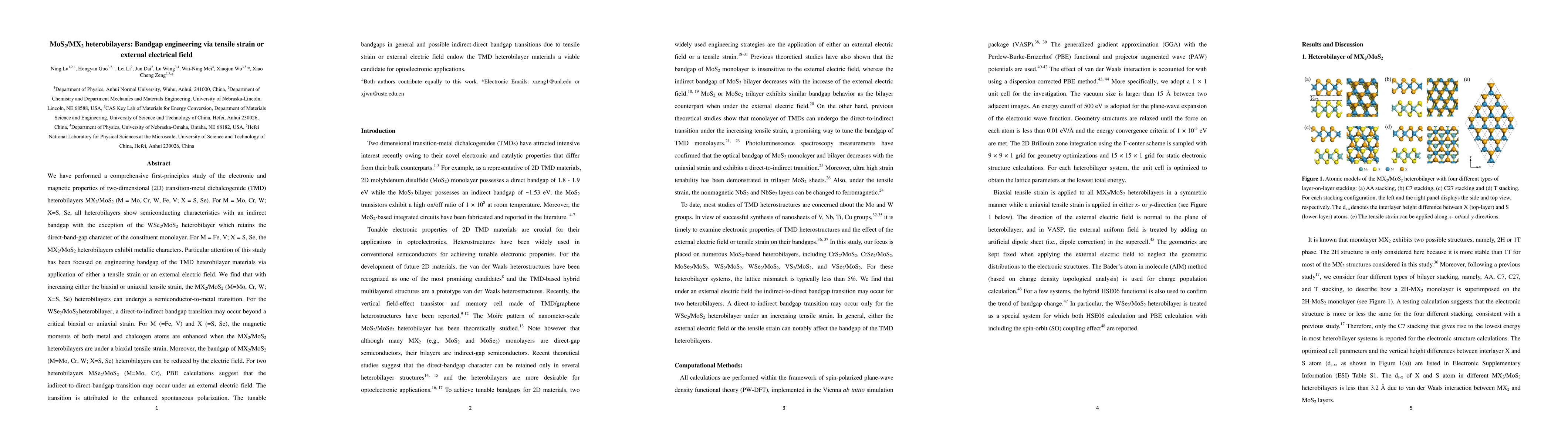 This paper investigates the electronic and magnetic properties of MX2/MoS2 heterobilayers, finding that tensile strain and external electric fields can effectively engineer their bandgaps. Specifically, tensile strain induces semiconductor-to-metal transitions and may transform direct to indirect bandgaps, while electric fields can reduce bandgaps and potentially cause indirect-to-direct transitions. These findings suggest promising optoelectronic applications for these materials.