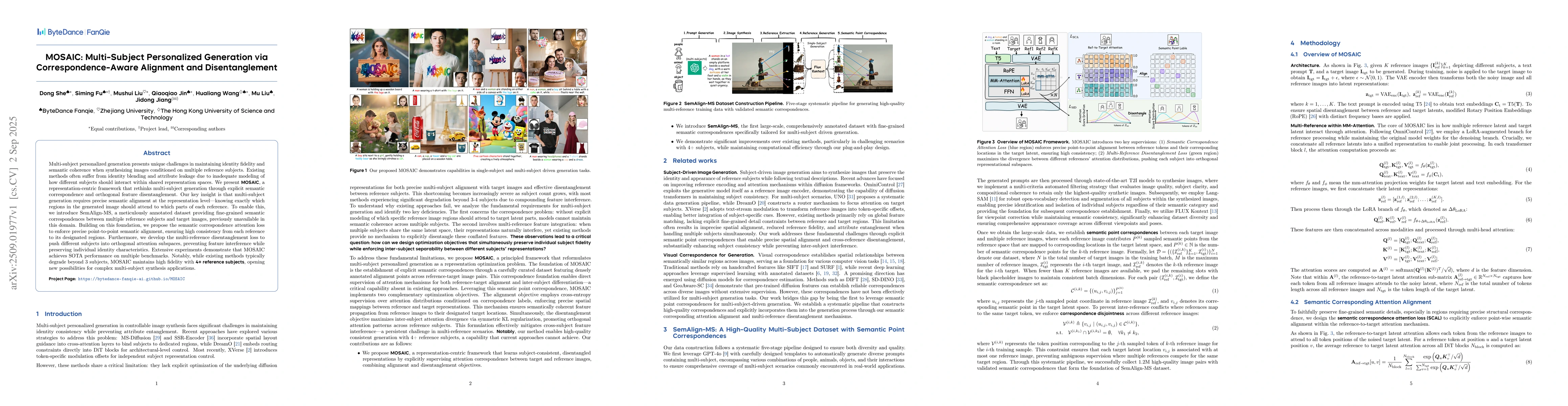 Multi-subject personalized generation presents unique challenges in maintaining identity fidelity and semantic coherence when synthesizing images conditioned on multiple reference subjects. Existing methods often suffer from identity blending and attribute leakage due to inadequate modeling of how different subjects should interact within shared representation spaces. We present MOSAIC, a representation-centric framework that rethinks multi-subject generation through explicit semantic correspondence and orthogonal feature disentanglement. Our key insight is that multi-subject generation requires precise semantic alignment at the representation level - knowing exactly which regions in the generated image should attend to which parts of each reference. To enable this, we introduce SemAlign-MS, a meticulously annotated dataset providing fine-grained semantic correspondences between multiple reference subjects and target images, previously unavailable in this domain. Building on this foundation, we propose the semantic correspondence attention loss to enforce precise point-to-point semantic alignment, ensuring high consistency from each reference to its designated regions. Furthermore, we develop the multi-reference disentanglement loss to push different subjects into orthogonal attention subspaces, preventing feature interference while preserving individual identity characteristics. Extensive experiments demonstrate that MOSAIC achieves state-of-the-art performance on multiple benchmarks. Notably, while existing methods typically degrade beyond 3 subjects, MOSAIC maintains high fidelity with 4+ reference subjects, opening new possibilities for complex multi-subject synthesis applications.