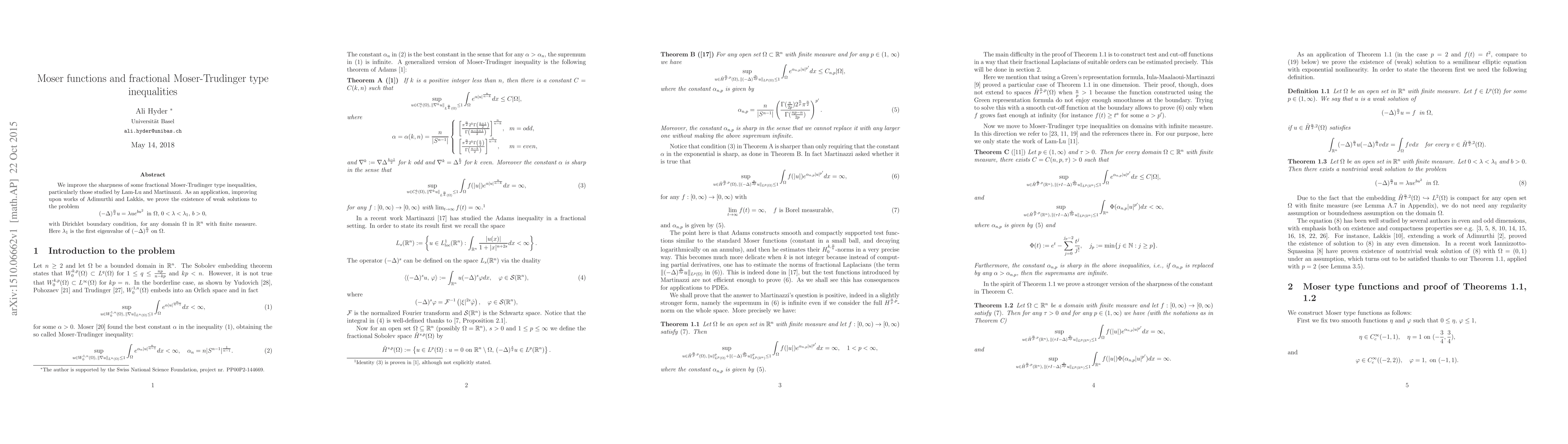 Researchers improve fractional Moser-Trudinger type inequalities to prove the existence of weak solutions for a specific nonlinear partial differential equation, enhancing previous works on non-linear PDEs.